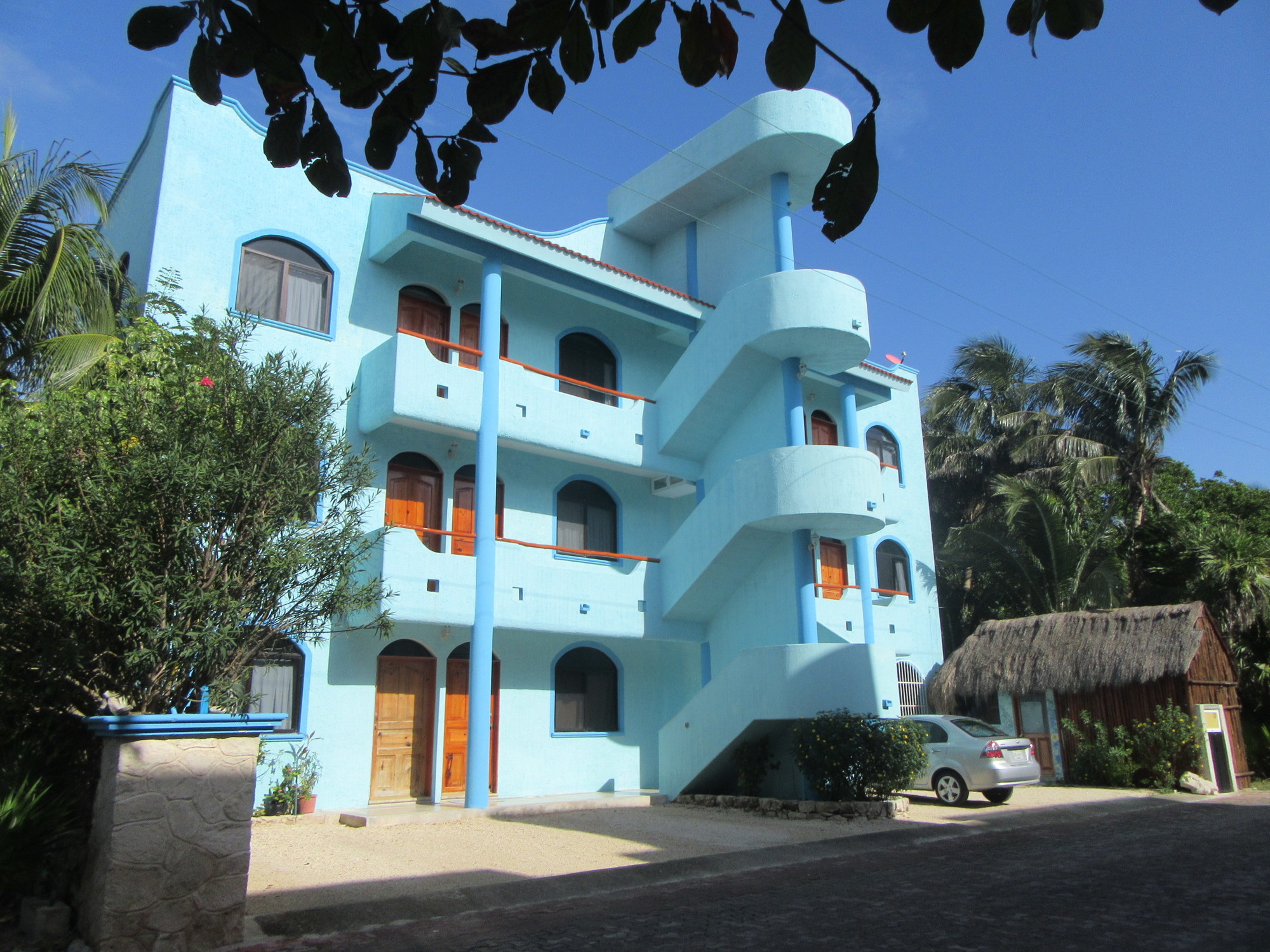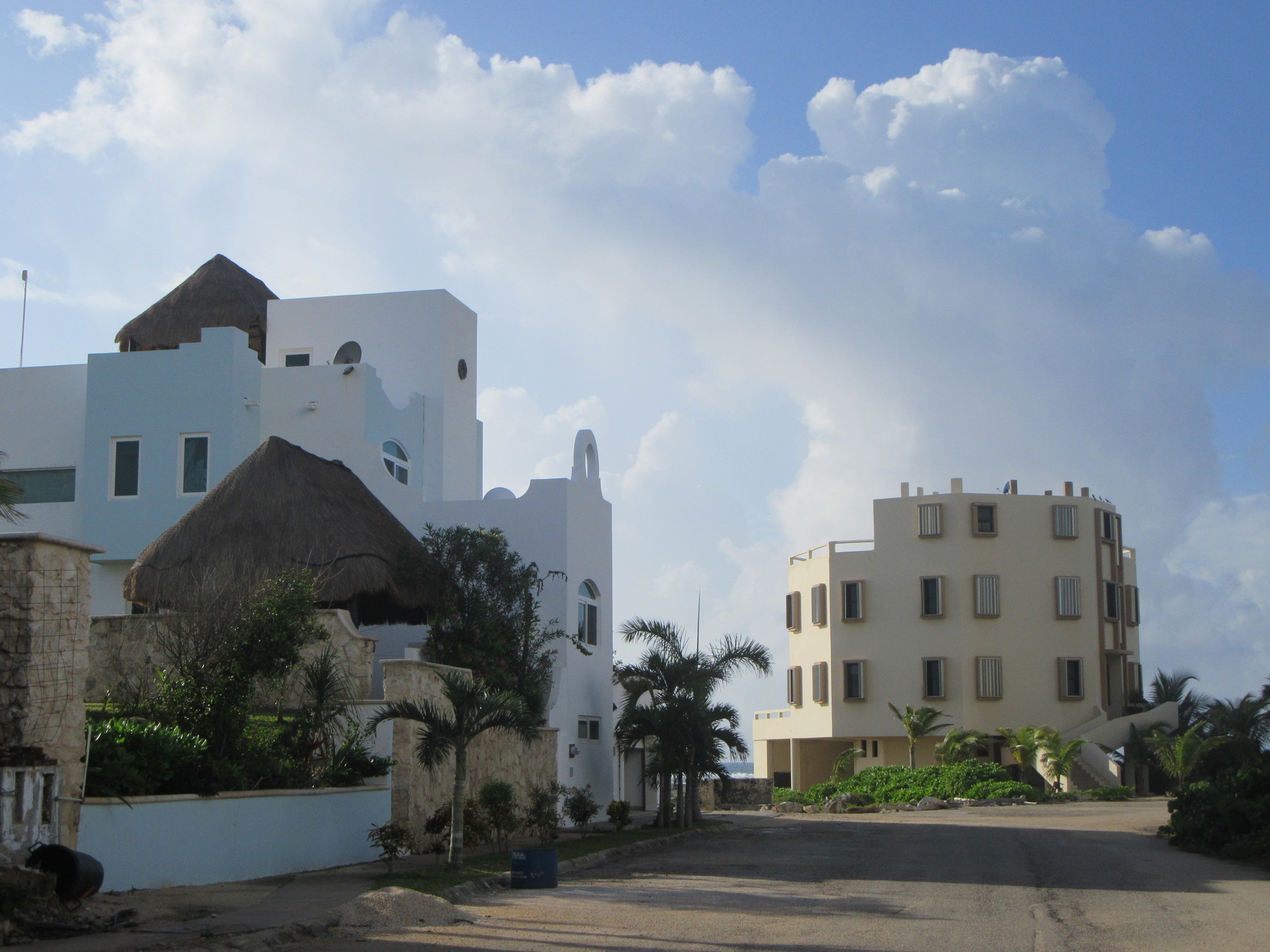 Since Akumal is actually so close to Tulum (25 km), we were looking for any kind of diversion down on the water side, that could use up a little time and distance. Most of the access to the shore in this area, the "Mayan Riviera" is locked up by huge condo or resort developments, but we did spot one unmarked road and just went down it to see where it went. It went to a short series of luxury beachside houses, before dead ending. Although we were free to go gawk at where the rich people were living, we did have to pass a guard station.