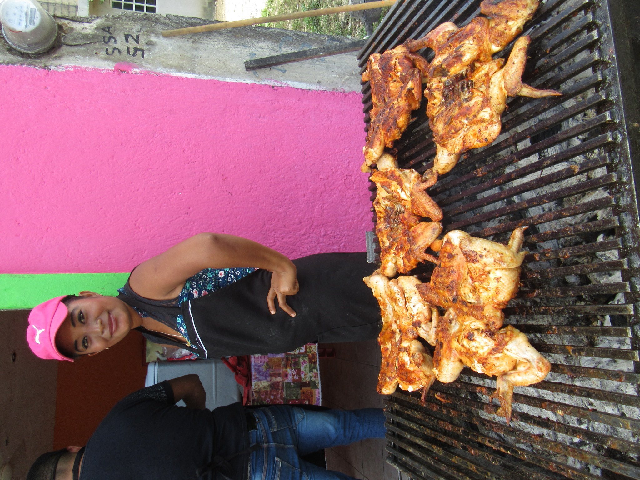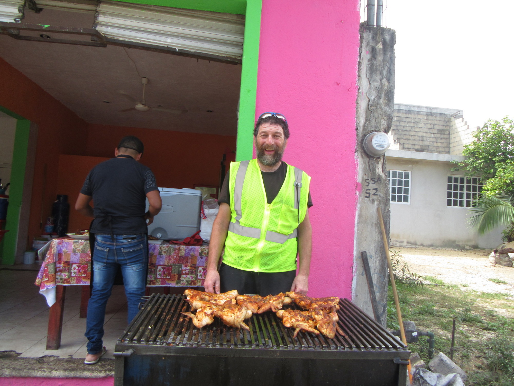 Day by day we have passed little food places where chicken is being BBQ'd by the street. I have been wanting to try some, but the time had never been right. This time was almost like that, as Dodie suggested something lighter, like salbutes, and to leave the chicken feast for evening. But I felt, with our time in Mexico running down, it was a question of a "bird" in the hand. So we moved on down to the first chicken on the street location.