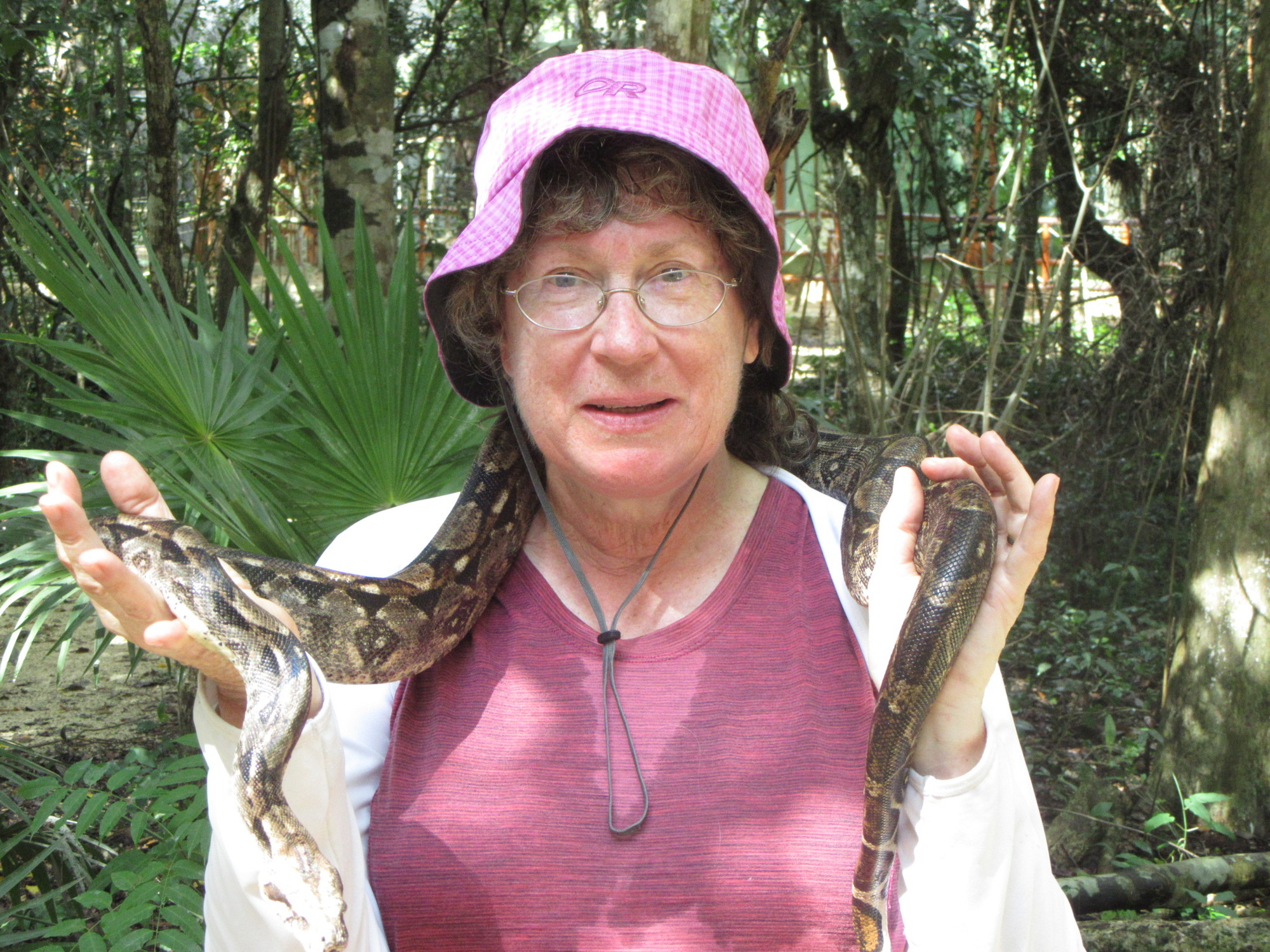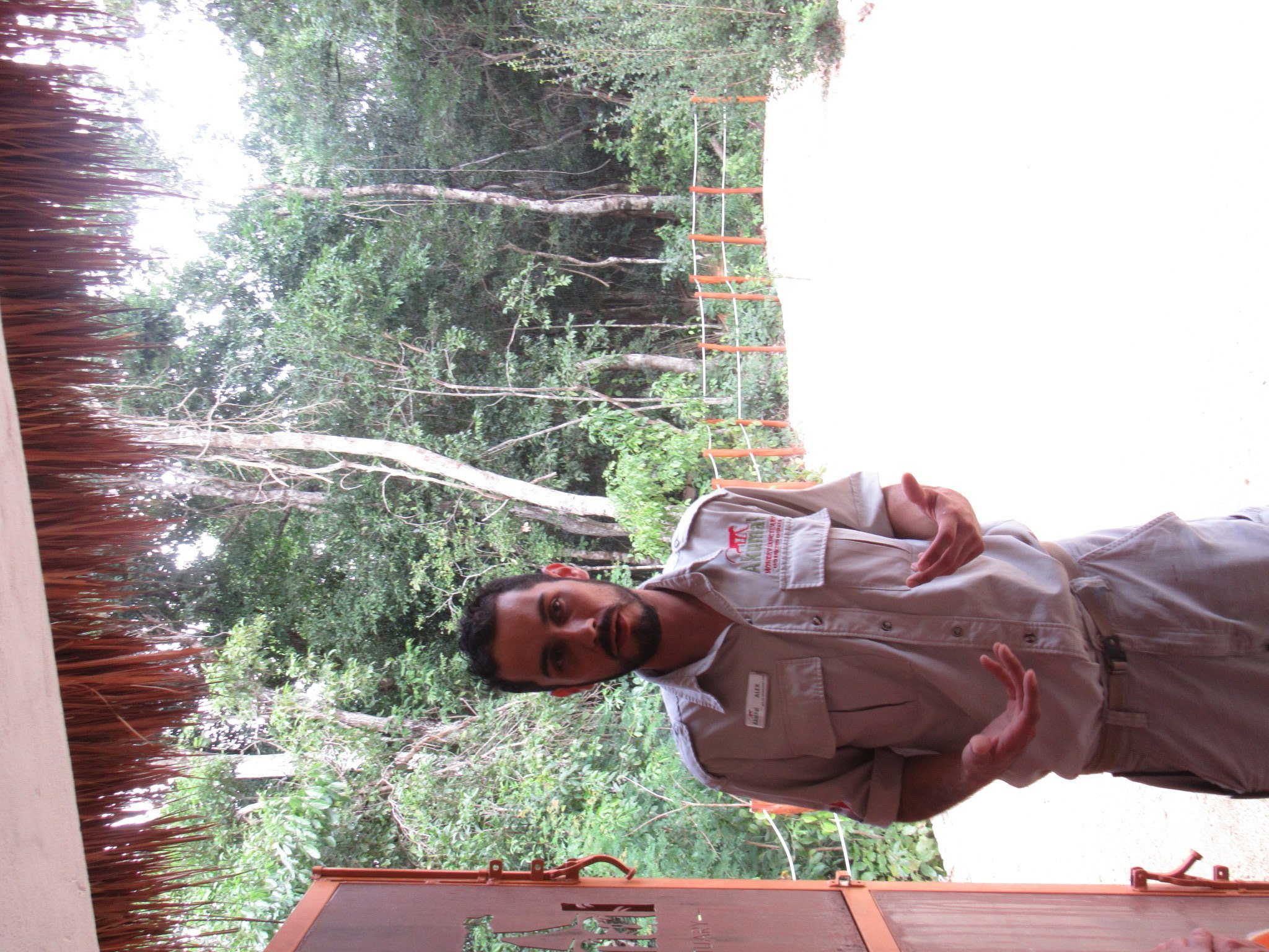 Central to the idea at the Sanctuary is that it is a guided tour. This turned out to be quite excellent, with our guide Alex very engaged and engaging. Along the way.many other staffers assisted with helping people hold birds, or snakes, or monkeys.