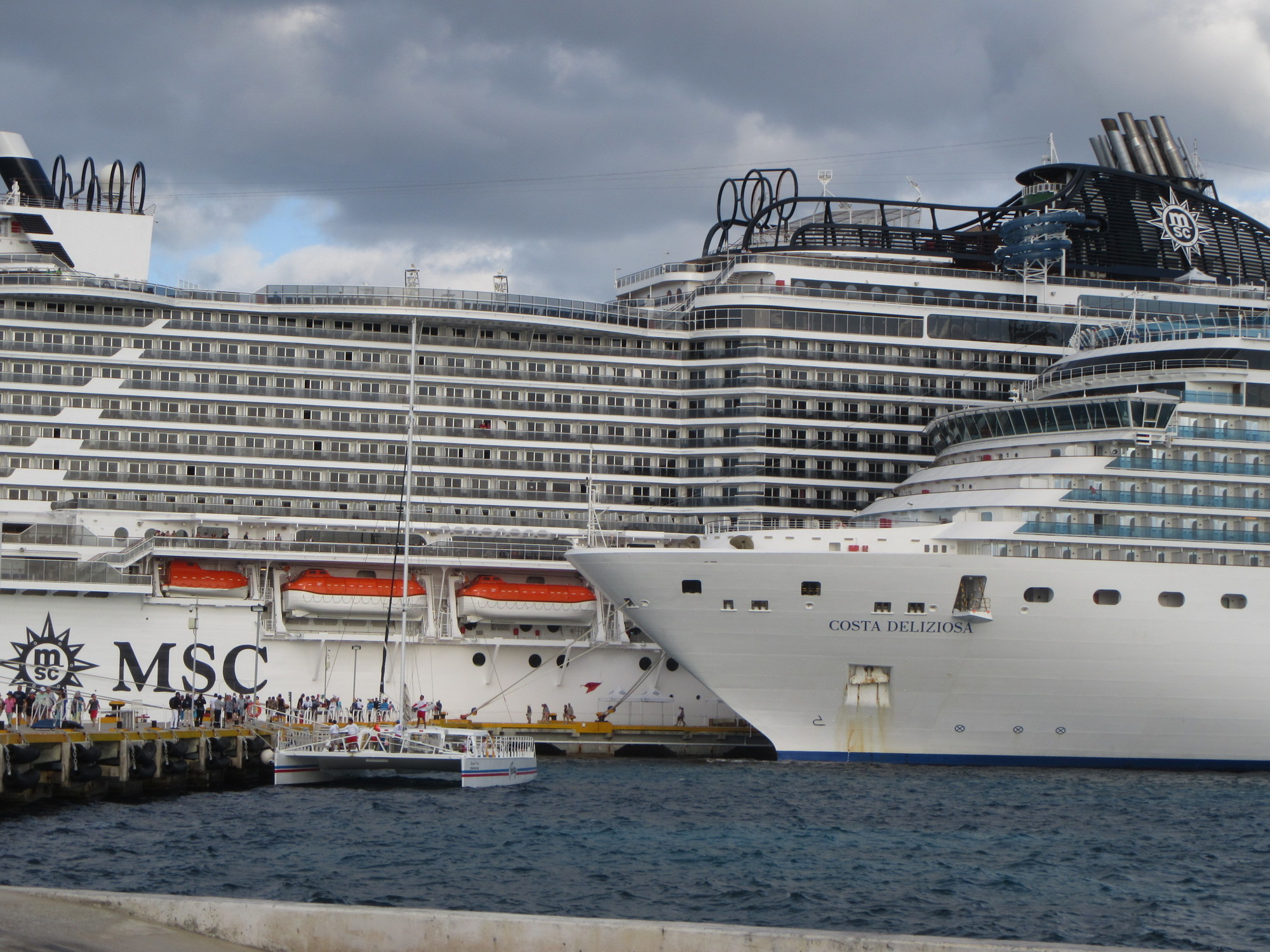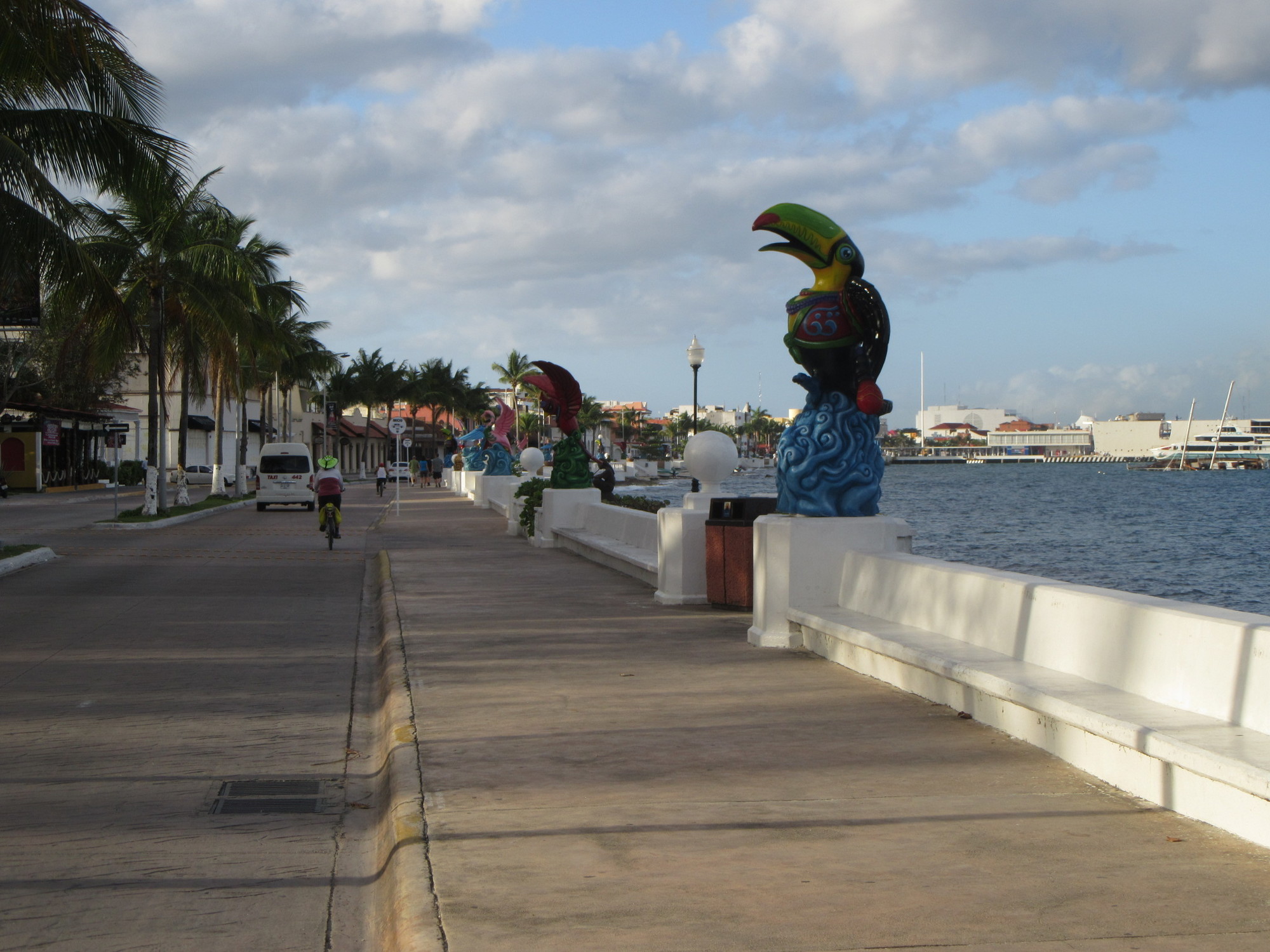 The first part of the trip was through the San Miguel waterfront, and down by the cruise ship port. We were amazed to find almost 10 km of heavy development down that west side. And what we thought was one or two city sized cruise ships turned out to be several. People were flooding off them, and we knew they were destined to swarm the restaurants and shops, driving up prices.