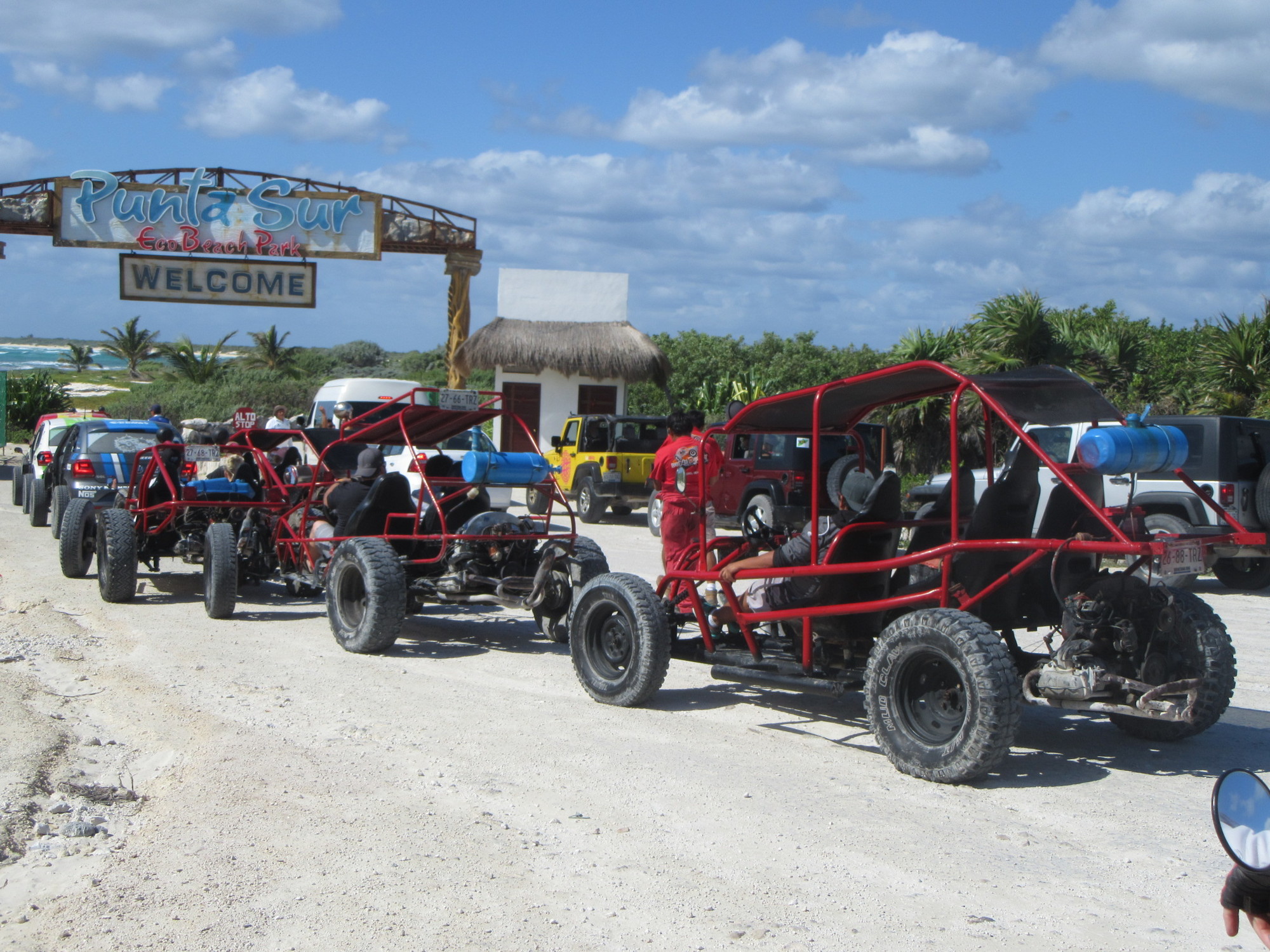 Speaking of "not the right place", I had been wrong about the lack of food and water on the circuit. There was actually a fair smattering of restaurants and juice stands. We stopped in at each one, because juice or coco frio or food would have been good in what had become very sunny and windy conditions. But prices were 400 to 500% above customary, all being quoted also in US dollars. So a coco frio (cut open coconut) would cost $5 or 200 pesos. The customary price is 20 pesos. We were having none of it! But the swarming tourists in their rented jeeps did not seem to mind.