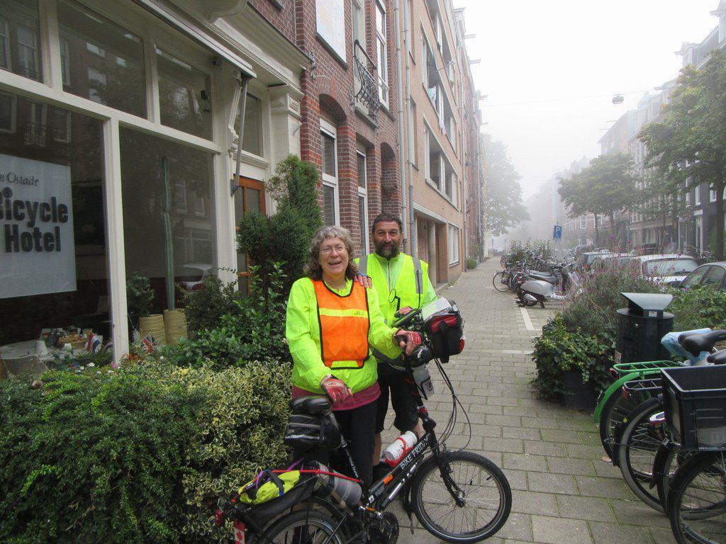 To have a day to visit Amsterdam we booked a place near downtown, called the Bicycle Hotel. Our plan was to go into town and drop our bags off there, so as to then cruise around town unloaded. Walking the city would have allowed us to go into places more easily, but we did not want to test Dodie's knees that way.