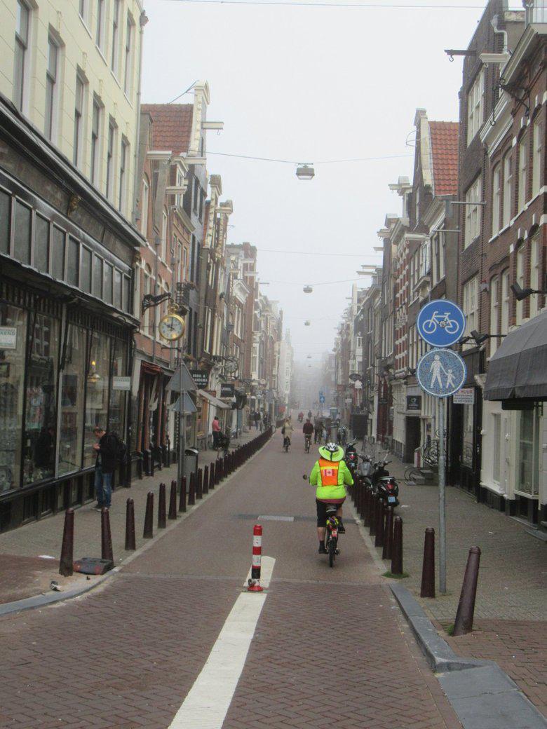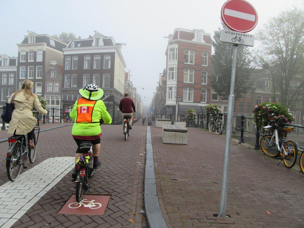 The owner of the Bicycle Hotel still wanted a snapshot of us with our toy bikes and yellow clothes. Even in Amsterdam we still attract some attention, and answered UQs through the day. One fellow at a red light told us that all tourists should look like us, that way they would easily identify who likely needs help.