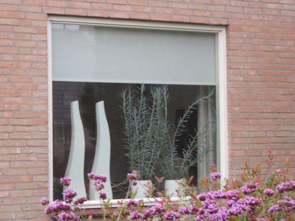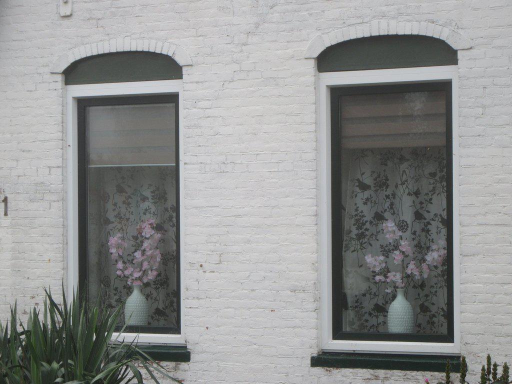As we passed out of the little town of Echtenerbrug we of course admired the neat doll's house like homes. Again, it was evident that every place with any pride (i.e. most of them) needed to have pottery in the window. The window display, says us, needs to be symmetrical. So one like this is fine: