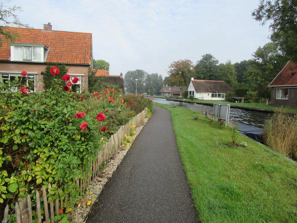 Before long we entered a marshy area that is a national park. The bike way then followed a canal, that had ultra cute houses on either side. For much of the way it appeared there were no roads, and each house had a parking inlet for its boat. The boats did not seem very big, and we wondered how people would bring in substantial items, like furniture. That question was answered when we came upon a house that was being renovated, and that had a big barge like boat parked in front.