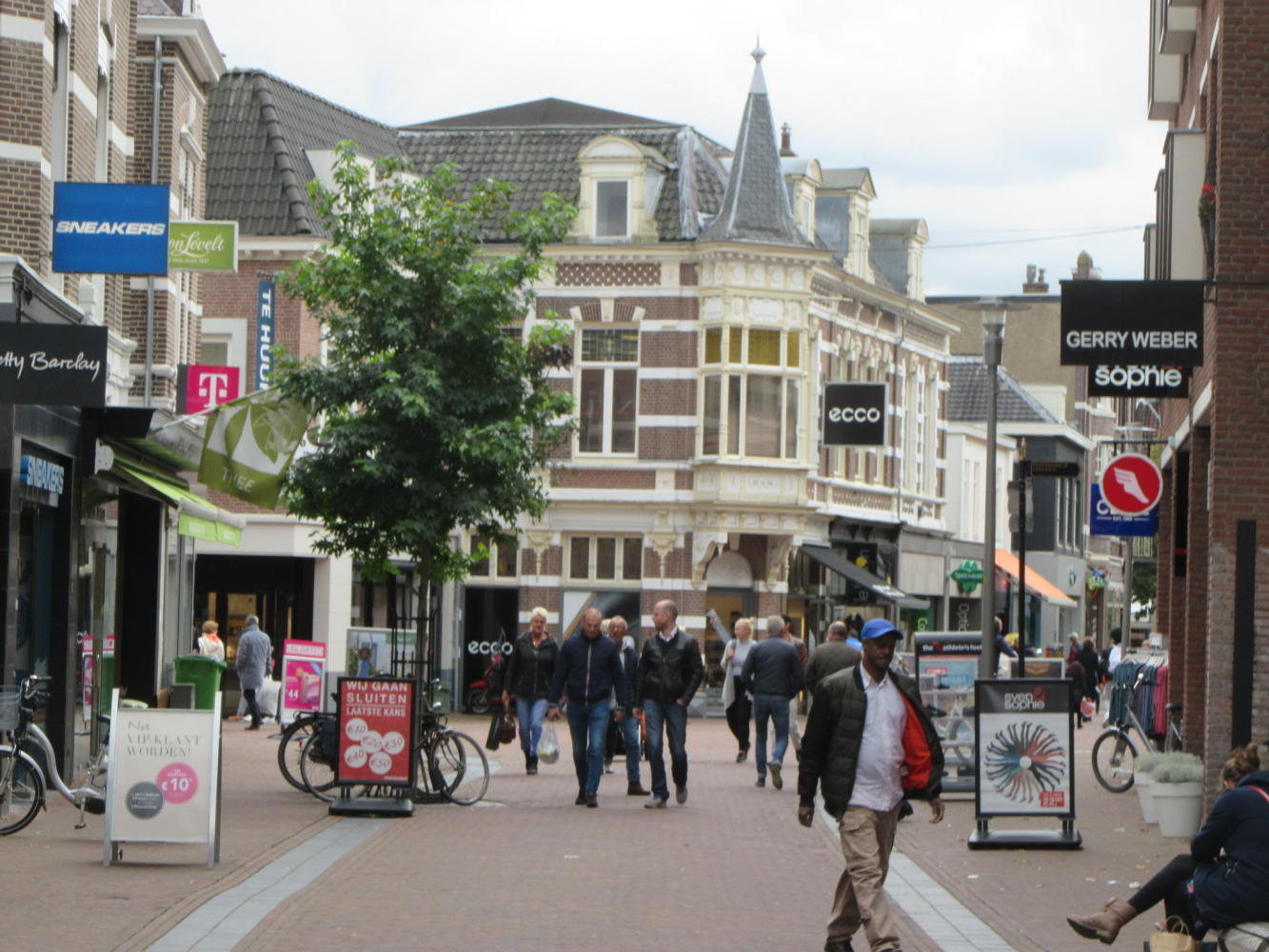 I used the freedom given me by my working Friday to have a look at the heart of Apeldoorn. Traversing even more calm and leafy streets, I did arrive at the downtown area of pedestrian streets, the city hall, and market square. It was all very nice, but somehow subdued. Maybe it was that the narrow streets were not quite narrow enough, maybe it was that many stores were from chains, maybe it was a relative lack of outdoor cafes, or maybe the "crowds" were not big enough. Sheesh, what does this tourist want for the middle of a work day in the Fall! Anyway, trying hard to stay awake I glided back through leafy-land to our dead quiet hotel. Maybe I am going stir crazy?