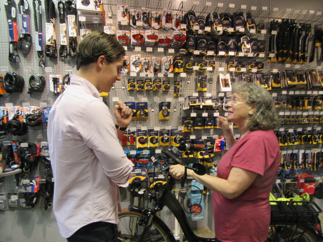Fortunately the bike shop staff were so sweet it was unbelievable. There was no question that made them impatient, and they seemed willing to spend all the time necessary to get us happily out the door.
