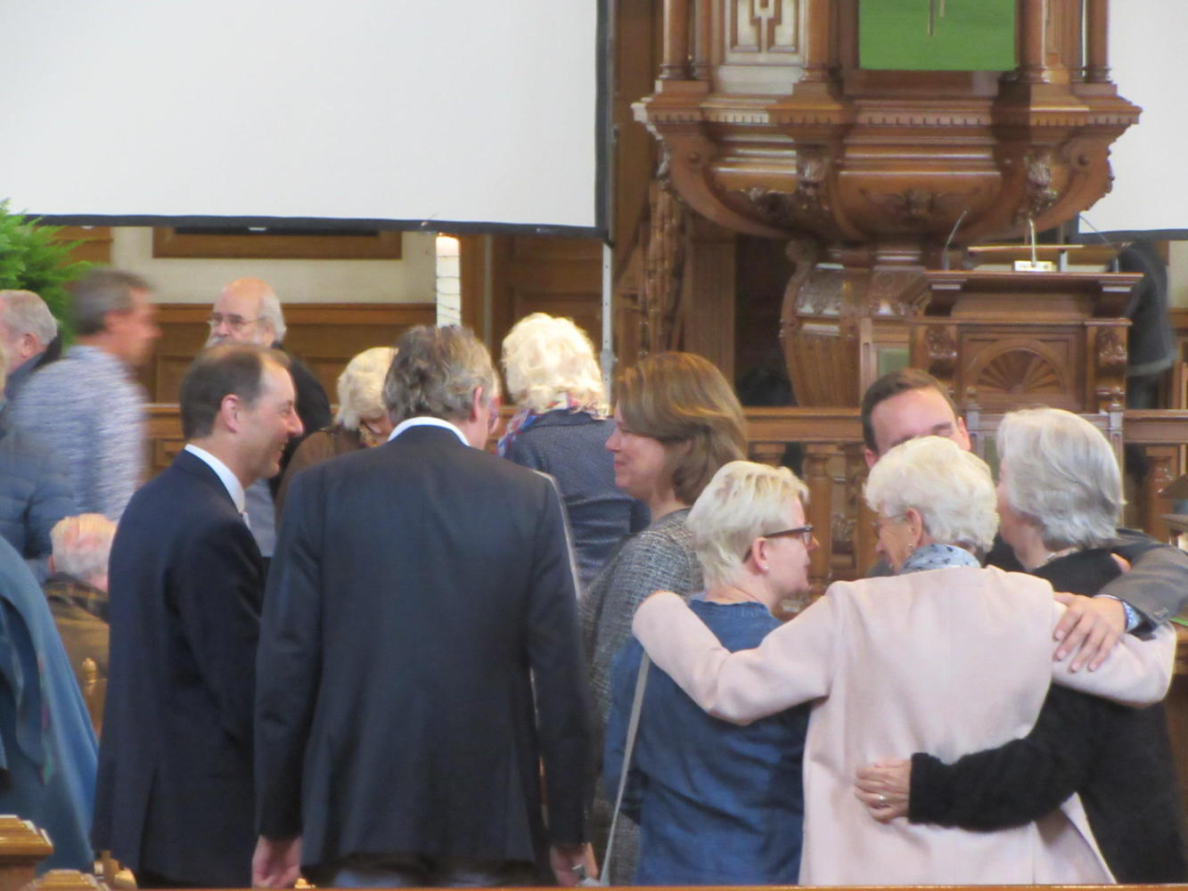 On the way back we stopped into the Grote Kerk, sort of to see if it was just as boring as last time. I again remarked on the way in that a few pink cherubs really wouldn't hurt. Inside, a service had just ended and people we gathered around. I thought the friendly vibes among them was worth recording, and snapped the shot below from a distance.