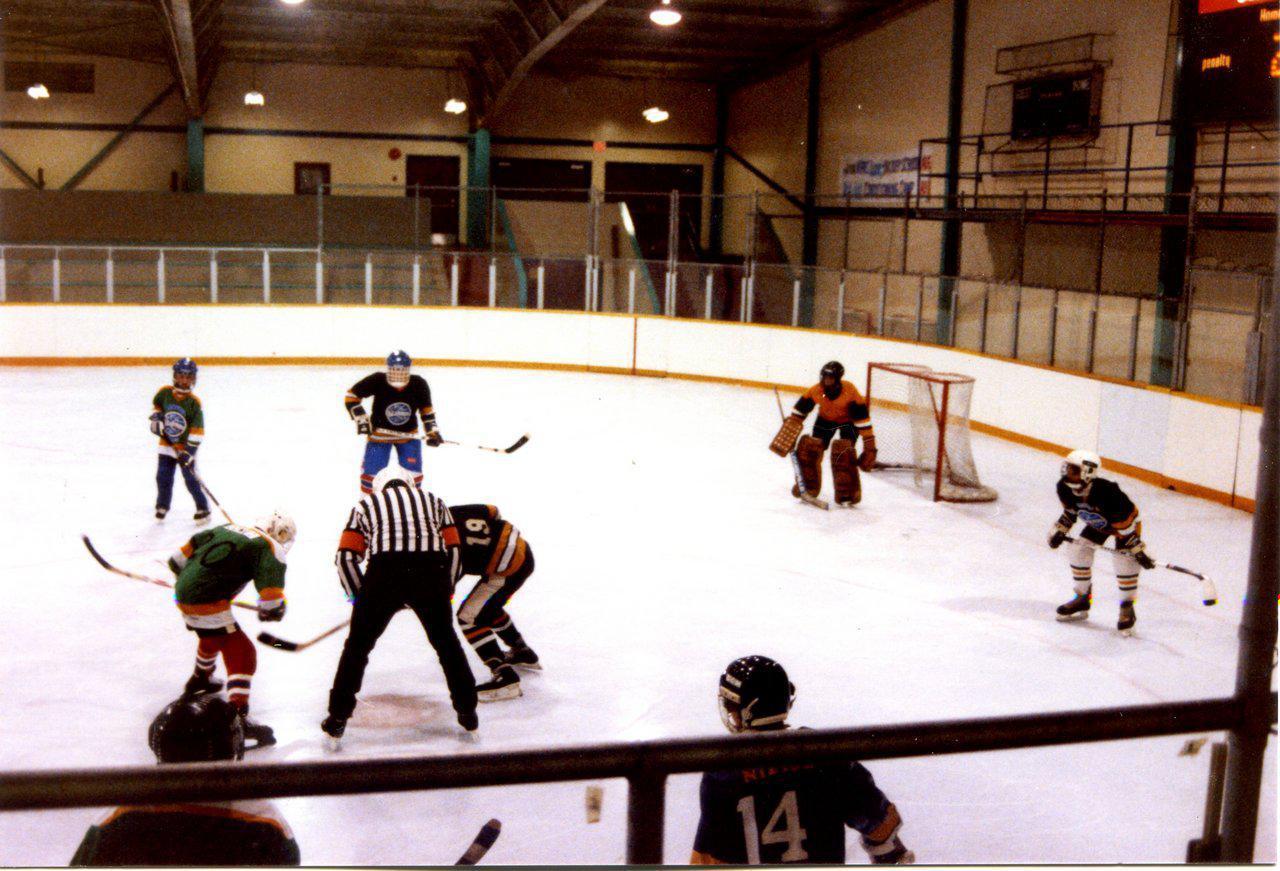 In Canada, hockey is always a big thing. But outdoor ice is rare where we live. Then we discovered the indoor arenas and a hockey craze started for the boys. Jeremy played in net, Josh typically on defence.