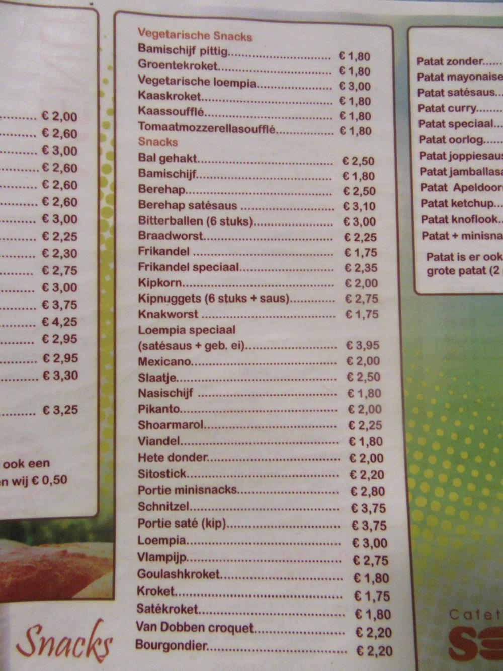 Dutch fast food features many types of croquettes.