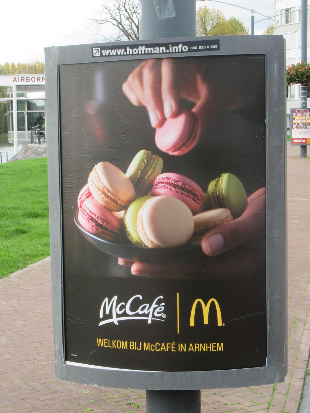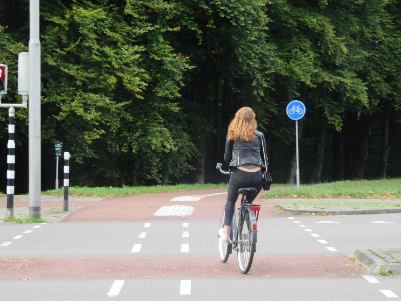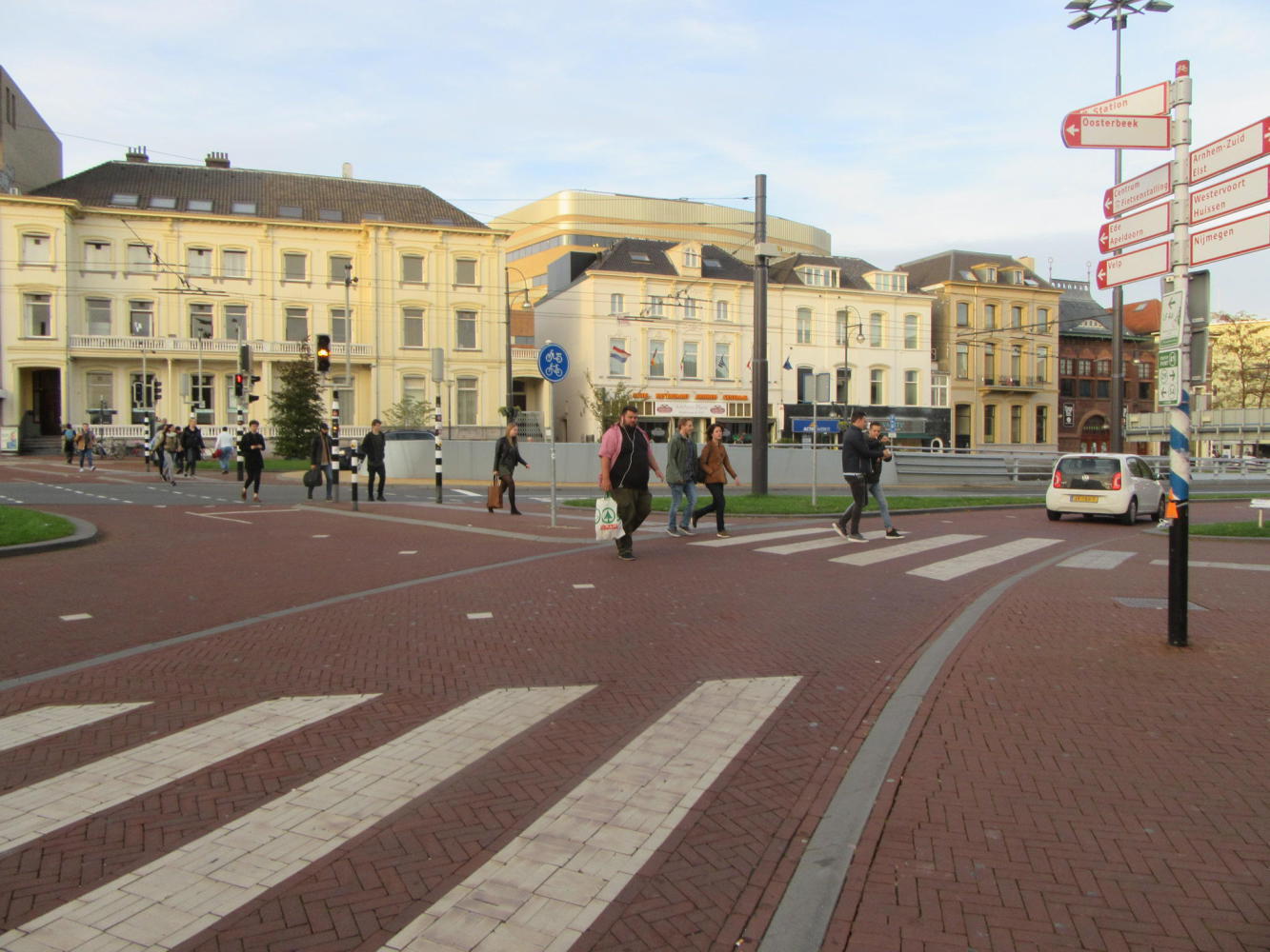 The three way flow of traffic - car, bike, pedestrian means you always have to be alert, and each stream has its own traffic lights. I have noticed that the car drivers are not prone to giving anyone a break. But at this intersection I was surprised when, while I was following a green bike light, a bus came at me, blasting his horn. I skittered out of the way, but went back to the scene to check it out. This shot is from the perspective of the bus. He had no light to stop him barreling into those pedestrians or any cyclists (like me) that might have been on the path beside them. So he would have needed instead to use caution and courtesy. I described this lapse to a local person and they put forward the hypothesis that the country is too small and with too many people. I don't know, but I do know we have learned you can not expect that car (any car) to stop for you.By the way, the red signs and green signs on that pole are all bicycle guidance - still great. One of the red signs points to Osterbeek, the site of my story about the Airborne attack aimed at the bridge.