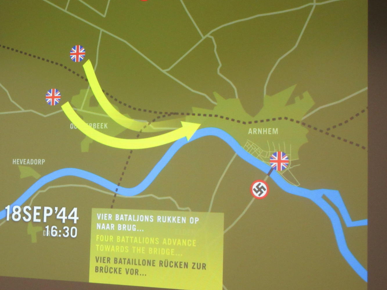 For the other two bridges the plot is clearer, with the Allies generally surging forward. But here, not so simple. The display also was not so simple. Much unlike other displays, the narrative gives equal billing to the British/Polish and German sides. In fact, there is an equal three way split, with a story also being told for the Dutch residents in the area, and at least one Dutch soldier involved in the conflict. Actually, the actor in one of the presentation films portraying the German side rather smugly declares this was resounding defeat of the Brits and the last great triumph of the Reich.