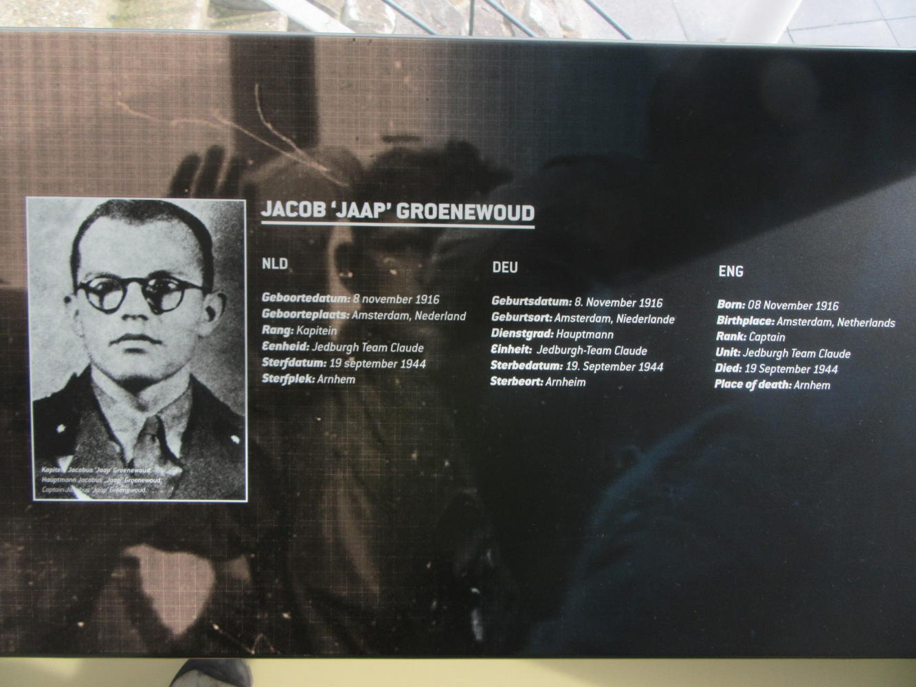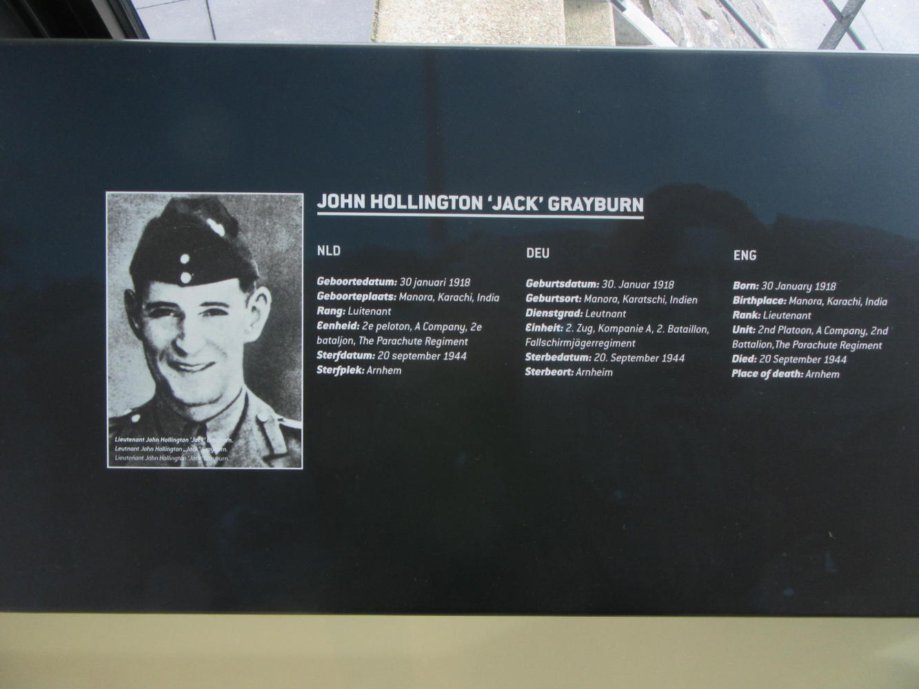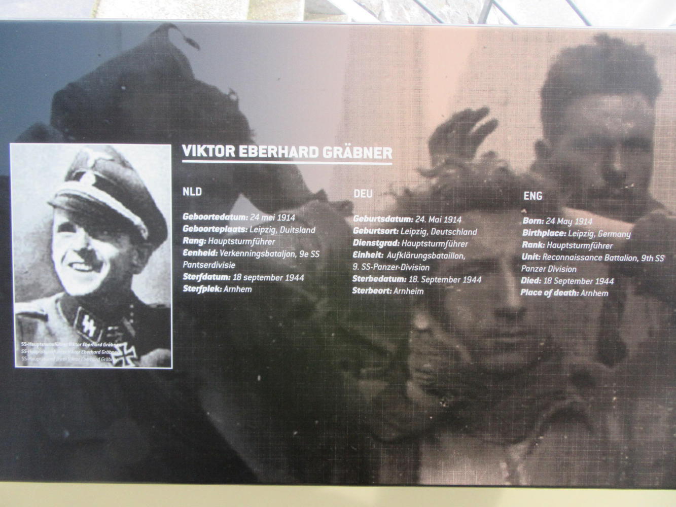 Very touching was a spotlight on one soldier each from the British/Polish, Germans, and Dutch. Different details of the life of each are given. But one thing is common - place of death - Arnhem.