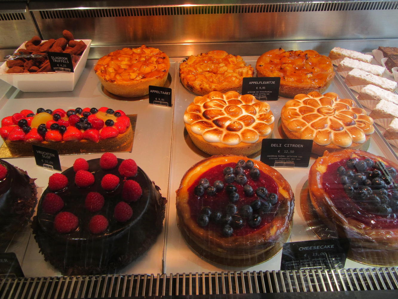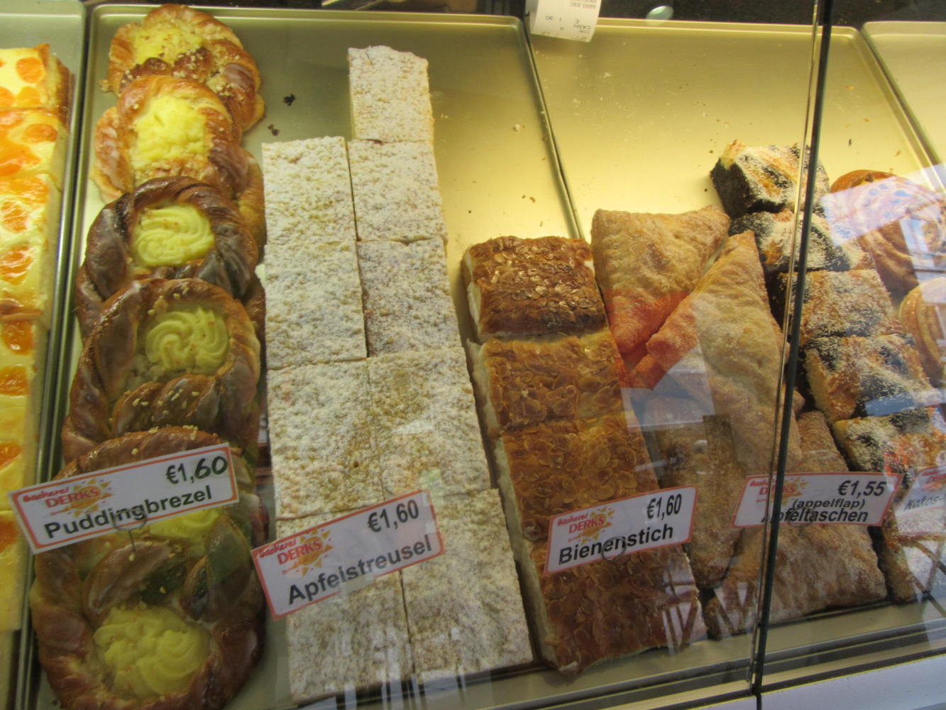 Typical Dutch baking is a little boring. (and Sandra, if you think those dark squares over on the right could be mohn (poppyseed), nope, they are just chocolate.) I will have to wait for Germany for my really favourite choices.