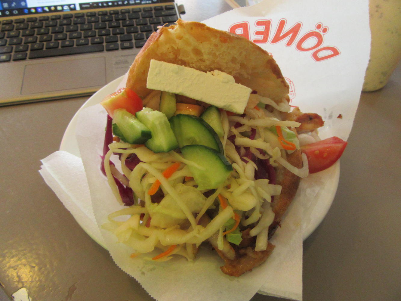 Sometimes travellers may be ridiculed for going to a new place and then eating at McDonalds. Well, it can be good to have something you know. So after cruising through the whole downtown today I went back to the Schwarma place I had found yesterday. It was somehow comforting to see again the Turkish guy who had made up my plate yesterday, and to sit at "my" table. In case you think I am completely unadventurous, though, you should note that I went for schwarma on a bun rather than on a plate.