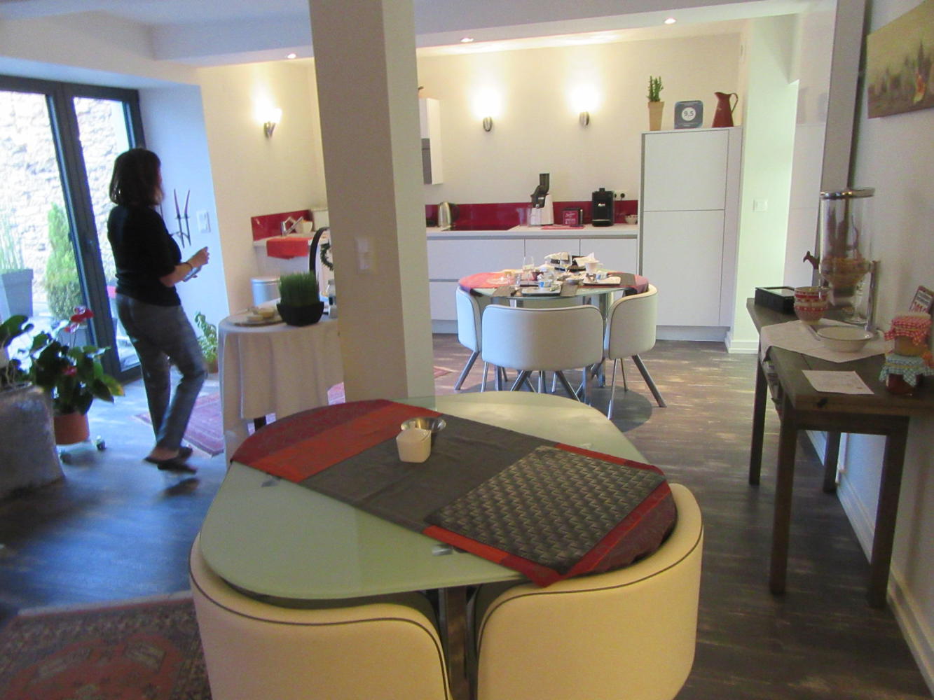 Tricia had not been too pleased with the hotel in downtown Sarrebourg, the Soleil Levant. (For the record, that translates as the House of the Rising Sun). So we put ourselves a bit out of town, at the Ibis Styles. These folks foolishly had croissants, coffee, and apples on offer at the reception. They must not receive that many starving cyclists!