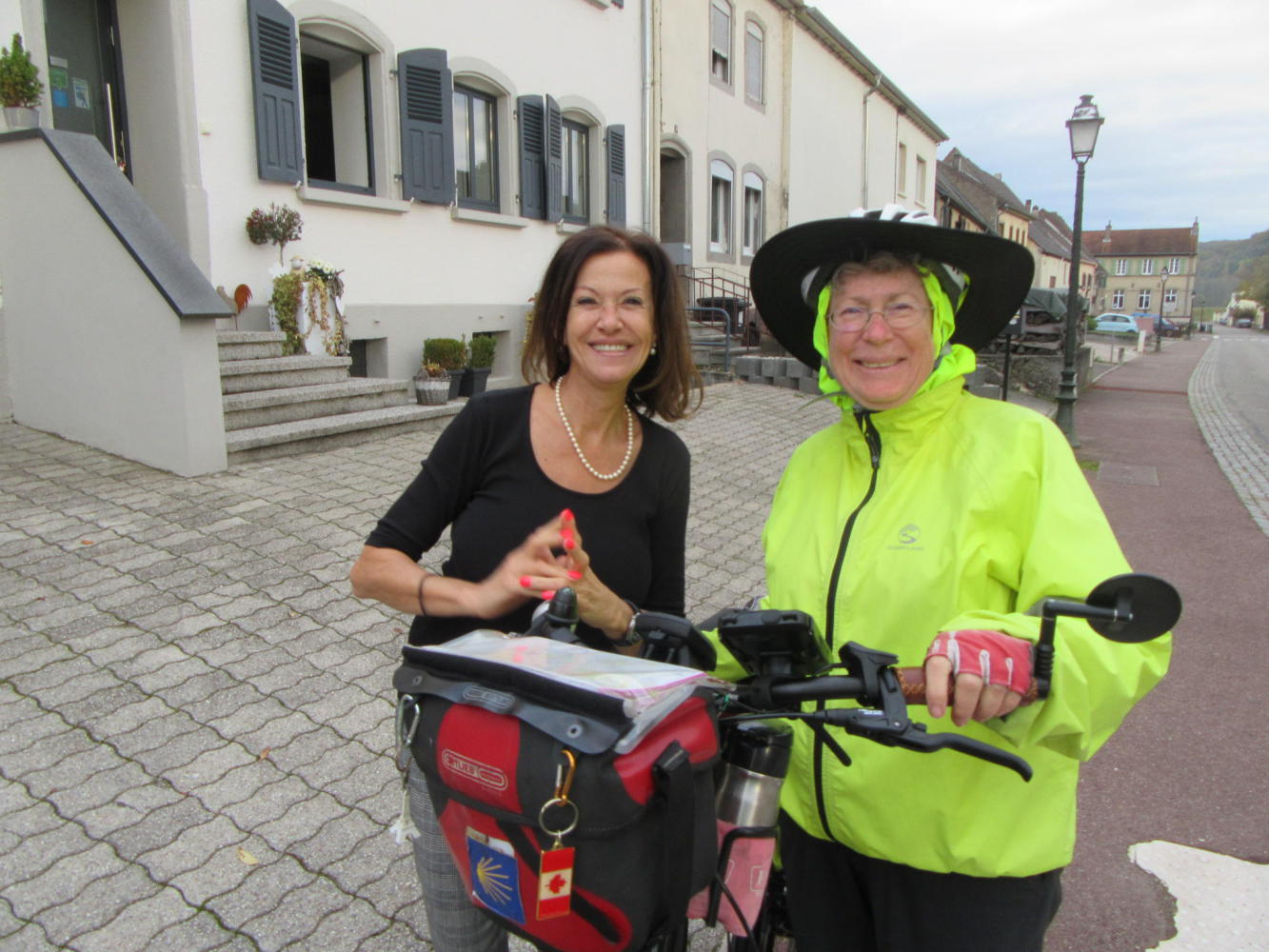 We asked Noelle if we could prepare two sandwiches from the breakfast stuff, for the road. But she said she had carefully metered out the bread and did not have enough for that. Hmmm, we could have easily done it from what was on our table. Noelle allowed that there was not much food or service to be found ahead on the route, but she felt in Sarralbe we would find stuff.