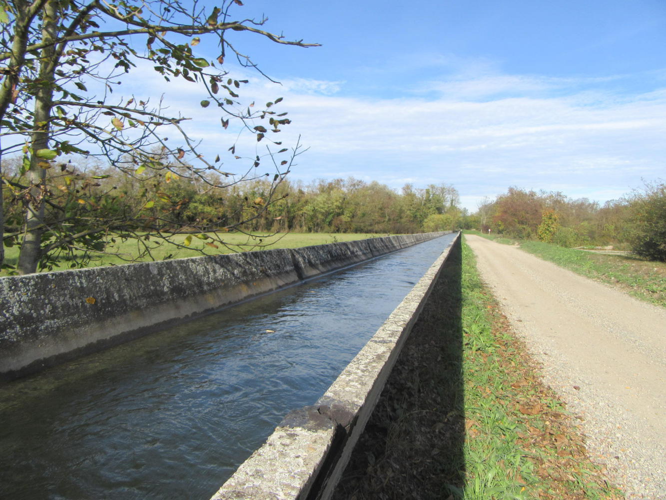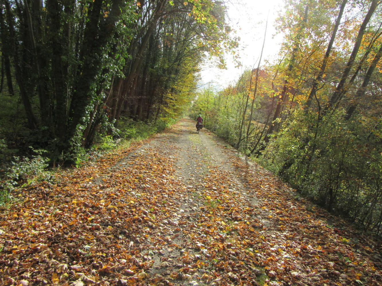 We spun along fairly happily for a while, only taking care not to fall in the canal in spots where the bank was eroded and the "trap" covered by fallen leaves. But at some point some unknown person had decided to make the path nice an durable by putting down a layer of larger stones. This is a common problem for cyclists. In our case, we just plowed on - no option really - and I felt it was costing me about twice the effort to maintain even our minimal speed.