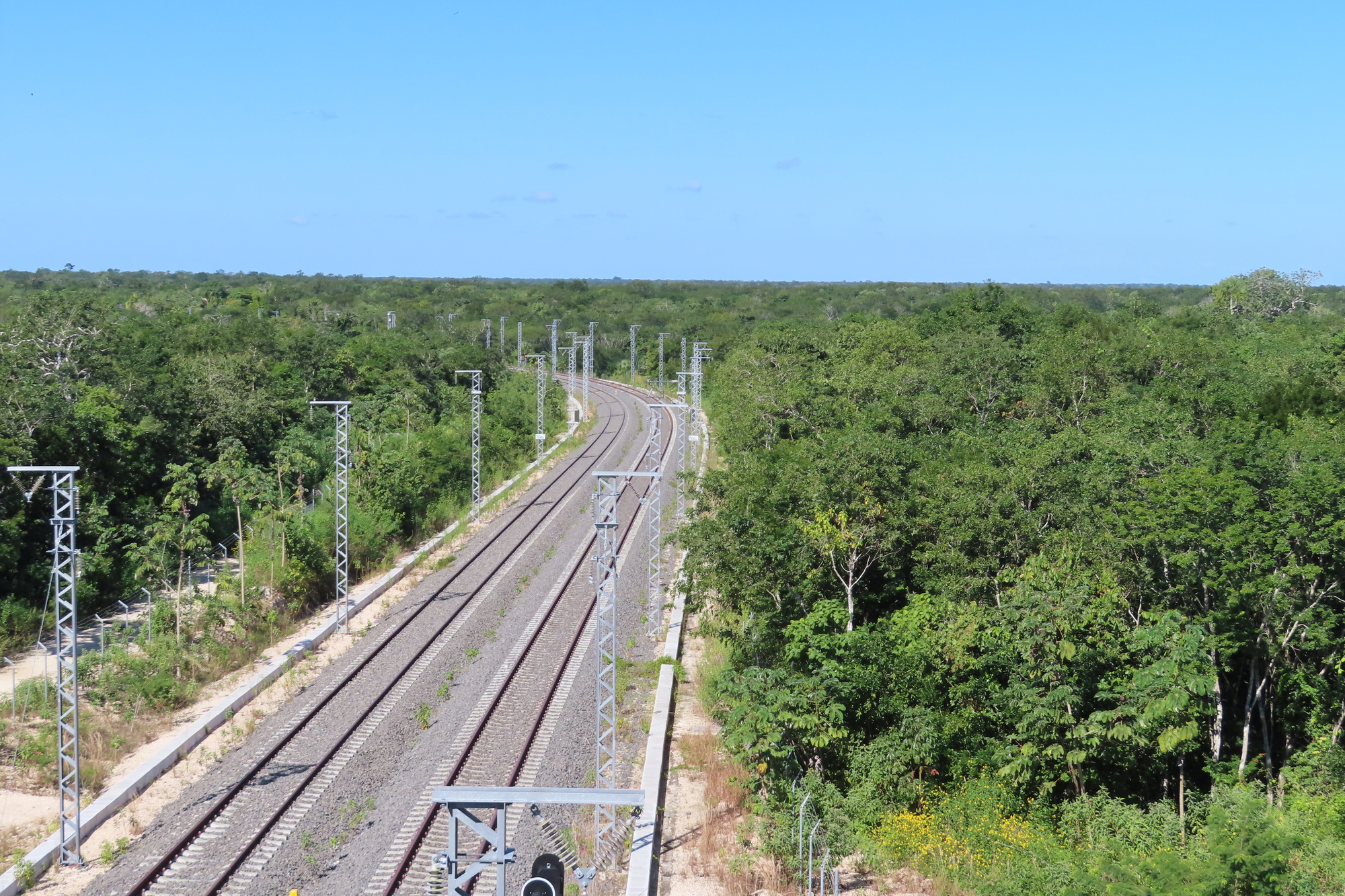 We came to what could have been one of the few hills in Yucatan, but actually it was an overpass for the Tren Maya. Looking down on the right of way, it looks like a big investment has been made in this tourist idea.