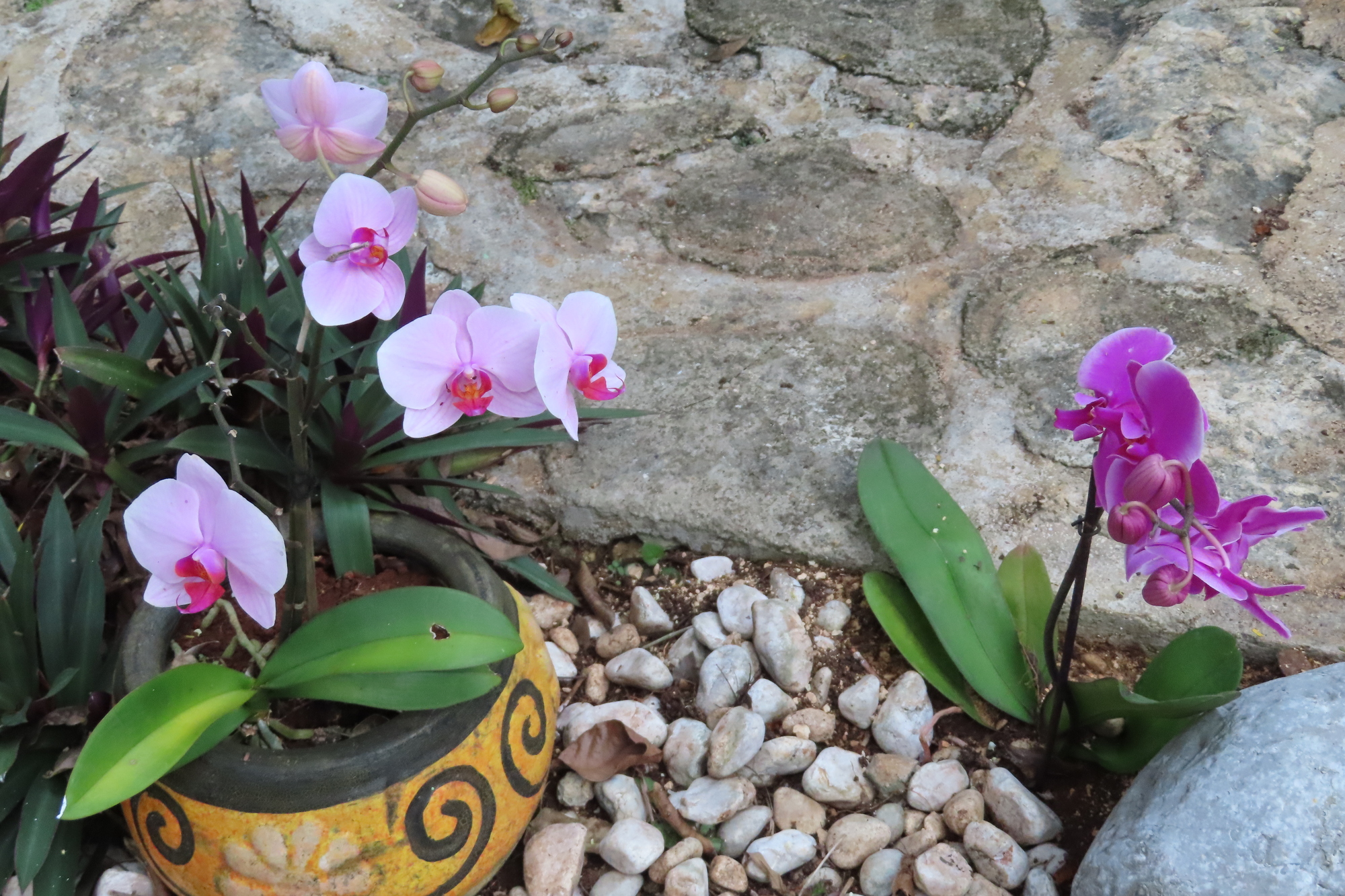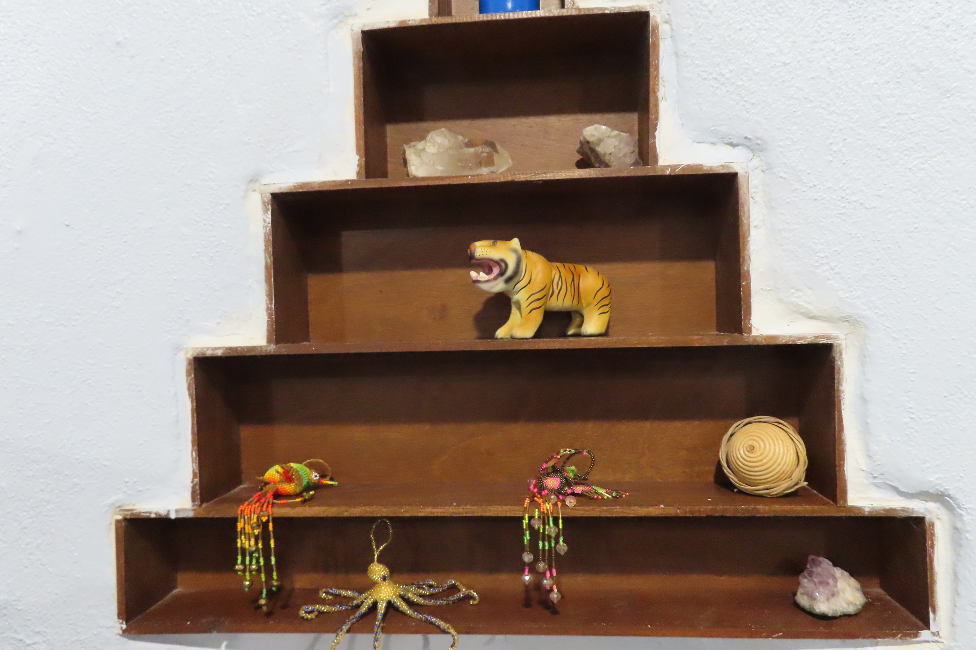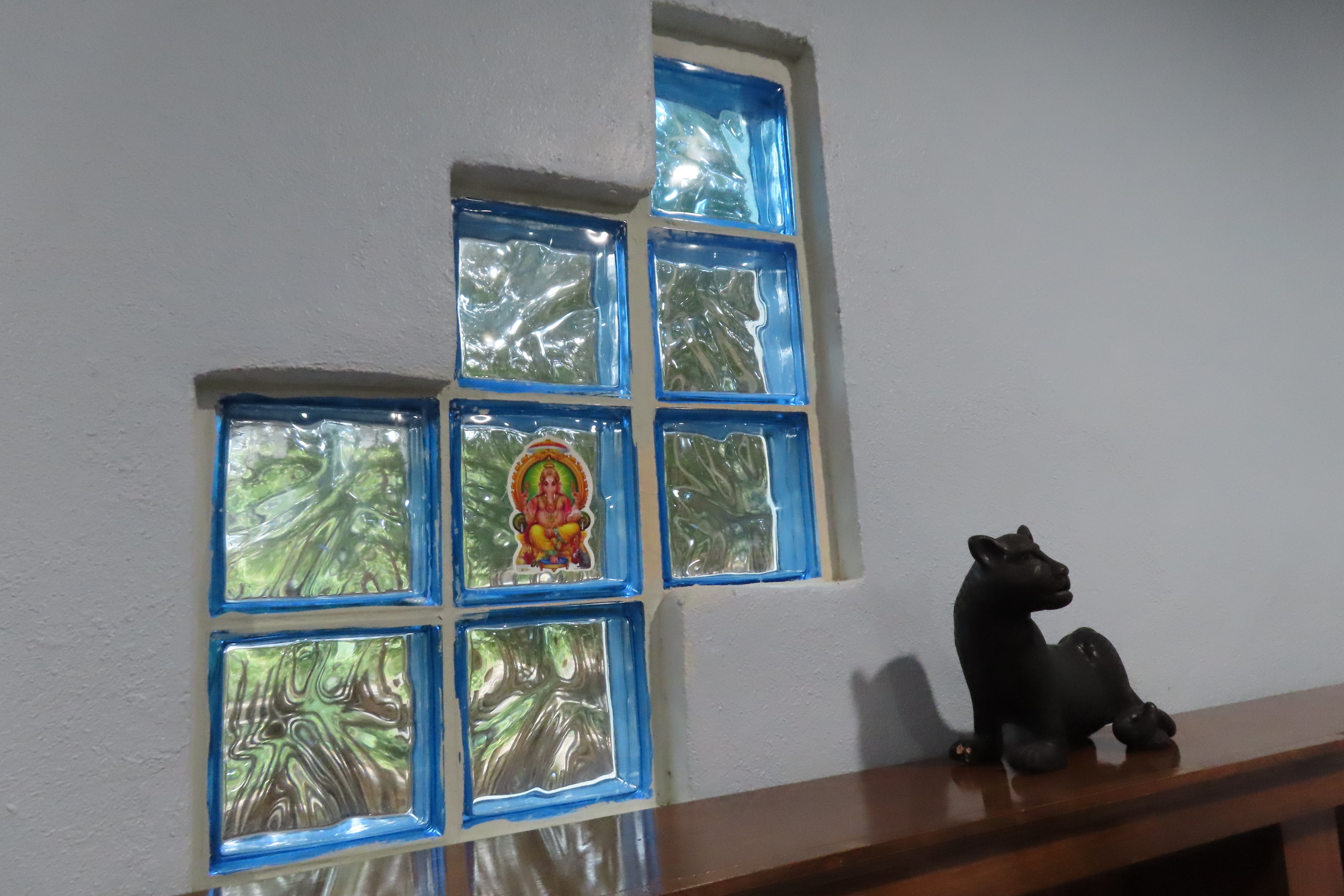 Eventually we reached the super tiny Tres Reyes, and turned off into the jungle for a short bit. Our road ended in front of what we assumed was our booked accommodation - at a place called Ka'an Serenity. It was a walled enclosure, with a beautifully carved door. We rang a bell and a man came, but looked puzzled when we announced our name and why we were there. He went away, but fairly soon another man arrived on a motorbike. The short story is that this was indeed Ka'an Serenity, but they had no Booking for us, despite the fact that we had paid in advance though Booking, last month. Out here in the jungle, there was no service on our phone, so we could not phone Booking to see what was going on. But man #2 told us they had cancelled their Booking affiliation last month, because of the too high fees.