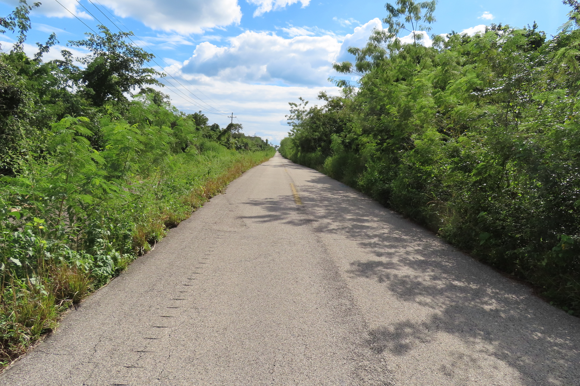Our road for some time beyond El Tintal continued as it had been since Leona Vicario - a narrow track through the jungle, but with more traffic than you would expect.