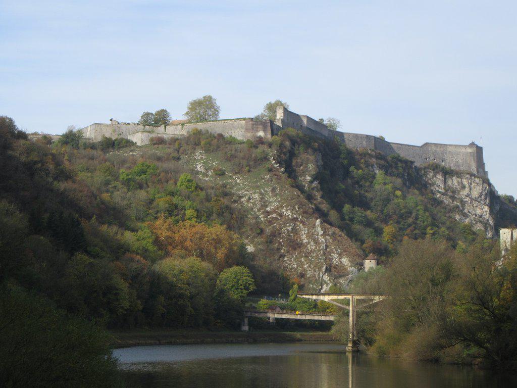 These thoughts helped, until before all that long we drew up under the cliffs and fortress of Bescanson. Bescanson old town is contained in a loop of the river. If you are just blasting through you can cut across the neck of the loop and go, but that would be a mistake!