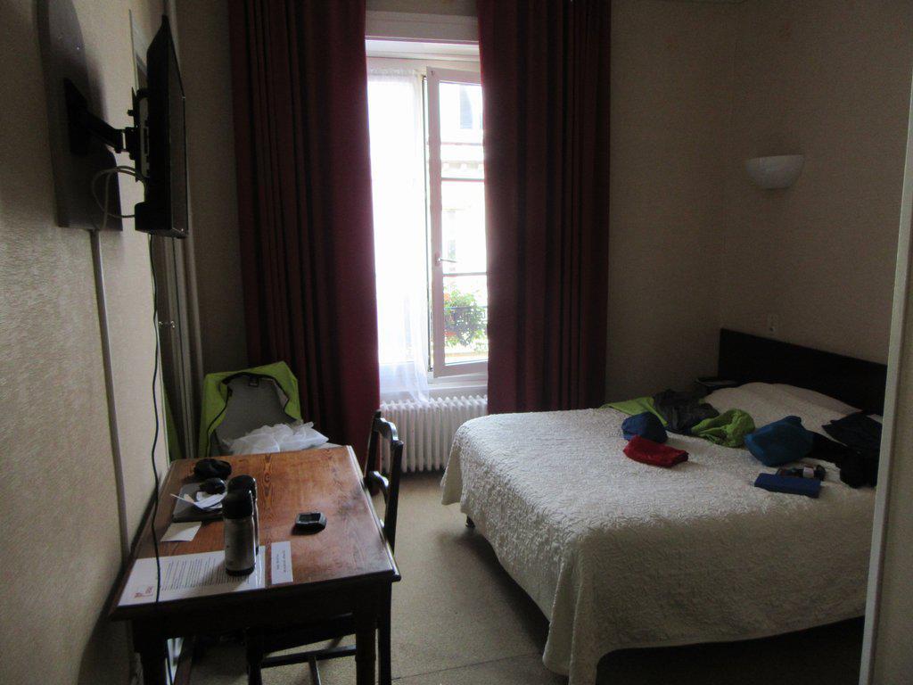 Well not quite the whole thing, because we have beaten those former Grampies out on at least two things. Firstly, wherever we stayed then, it could never beat where we are now: Hotel du Nord. This is smack dab in the pedestrian area old town. And I guess I will mention now that that old town is extremely large and provides a painting-like view at every turn. The buildings are large and solid, made of granite, and with windows always properly ornamented with sills and frames and mini balconies. The roofs provide a vista of chimney pots, worthy of Mary Poppins. The whole thing is virtually car free, and people walk in the middle of the street, only occasionally dodging the sleek but gentle electric trams, or busses heading up to the citadel.