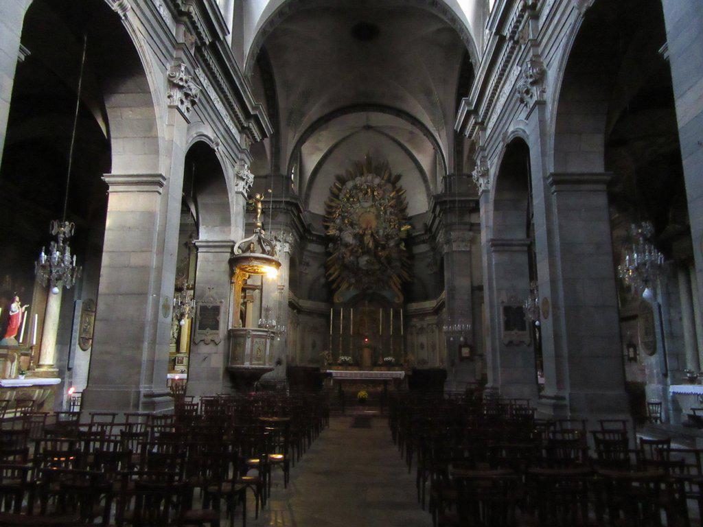 We continued up the street toward the cathedral, and stopped at the dark and ancient feeling Church of St Maurice. That could stand to reason, since a church here dates from the 4th century. However the building that is standing now was begun in 1704, making it fairly modern!