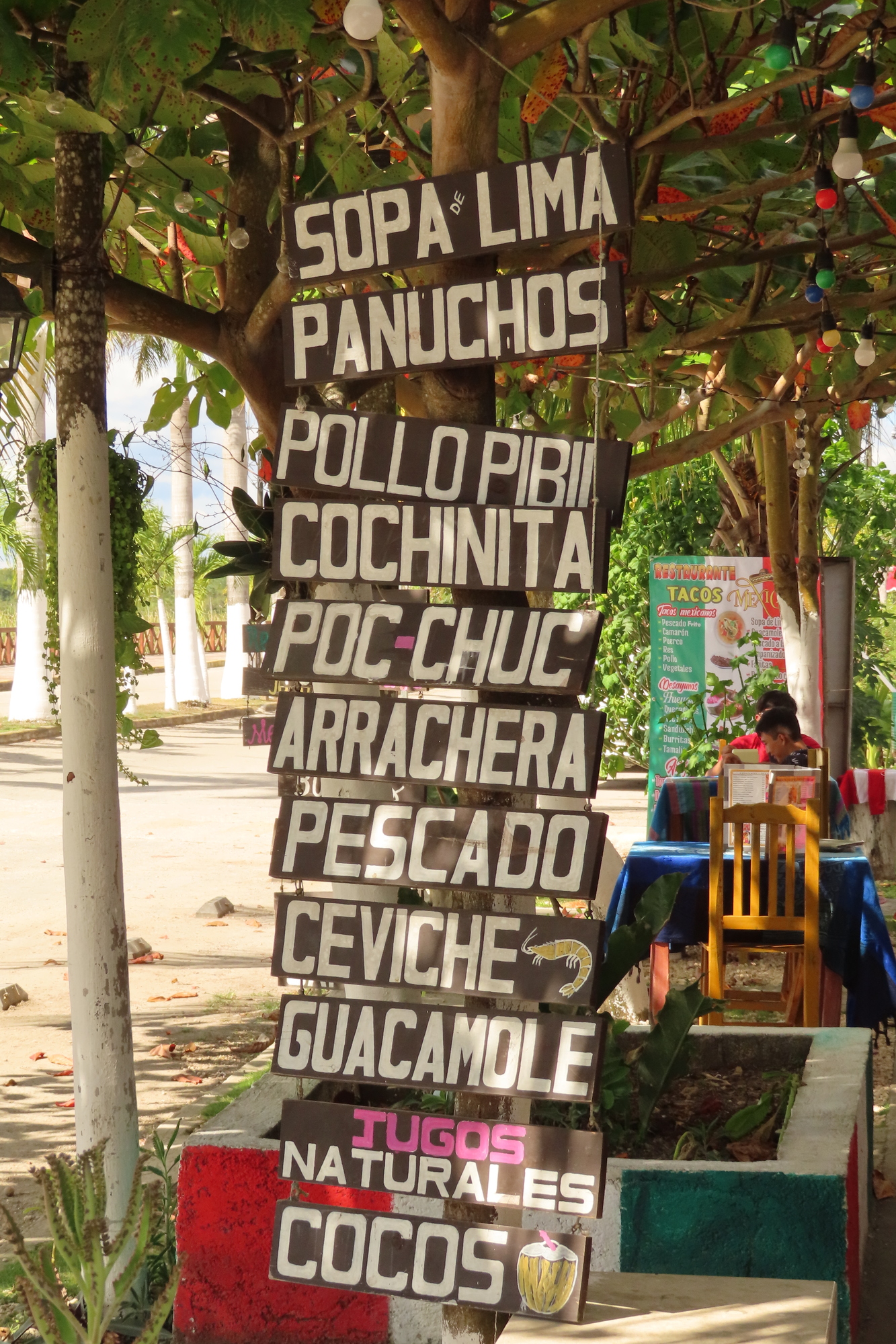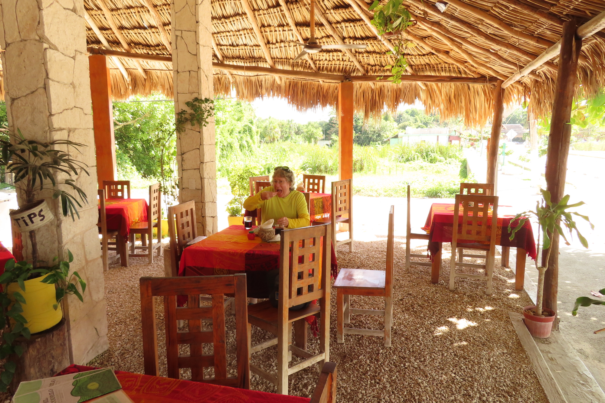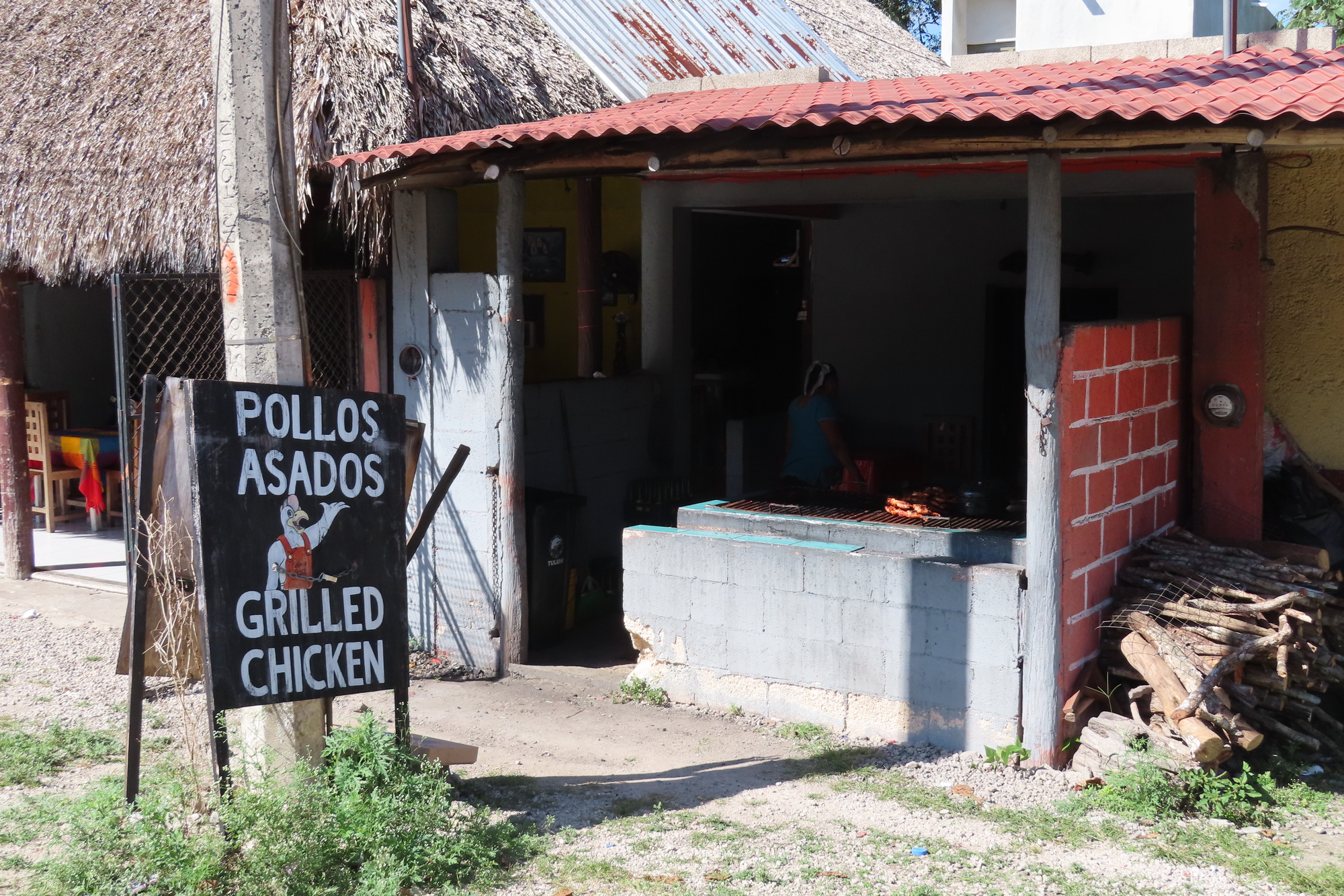 We rolled into Coba, a place that is familiar from some past visits. We passed the grilled chicken lady. We know that the wood fire broiled chicken is good, but a little pricy. In fact we had a target restaurant in mind - one down by Lake Coba, near the ruins.