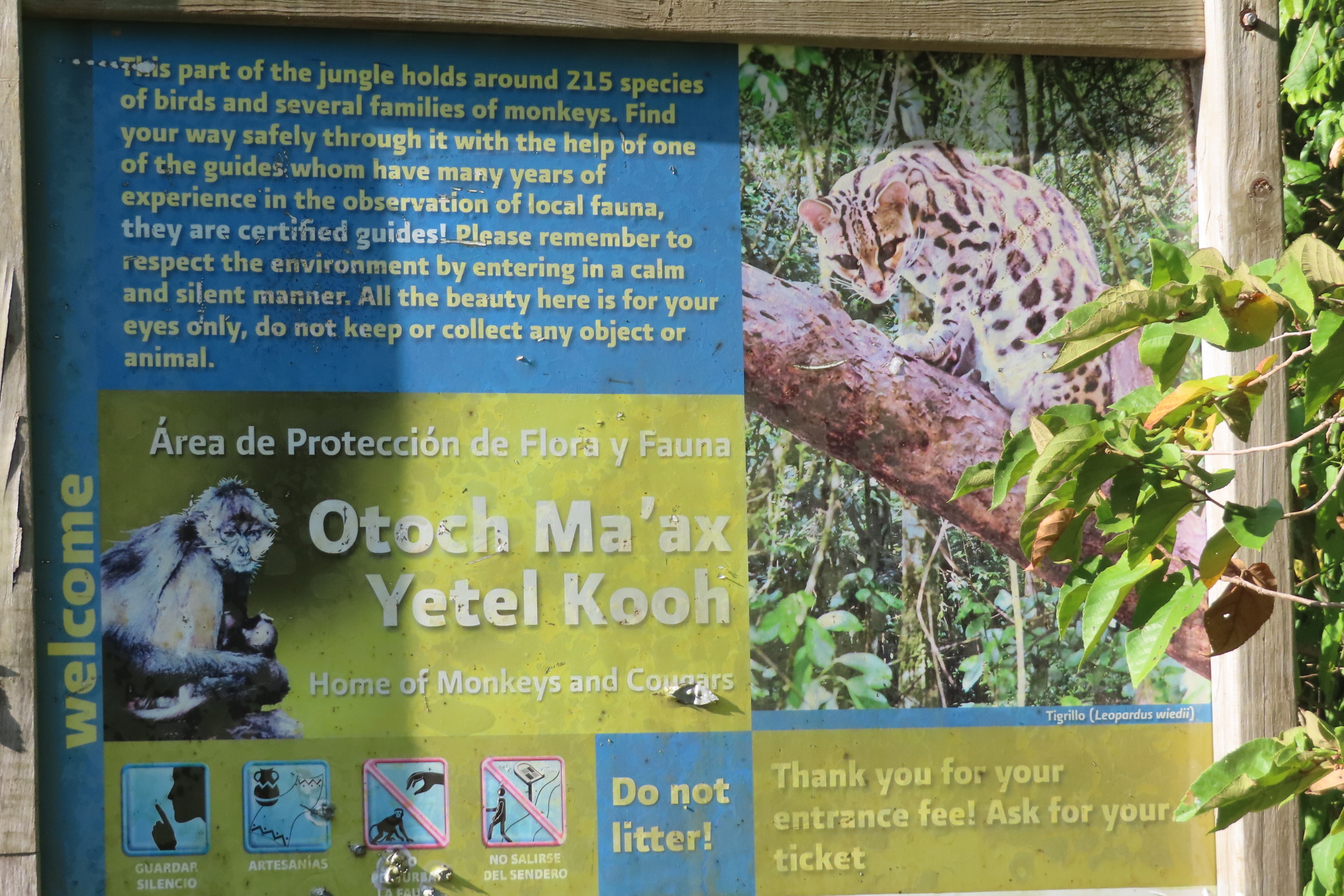 Along the way we encountered signs explaining that we were in a protected jungle. They picture, for example, a margay wild cat, but sadly we rather doubt that many such things are still in there.
