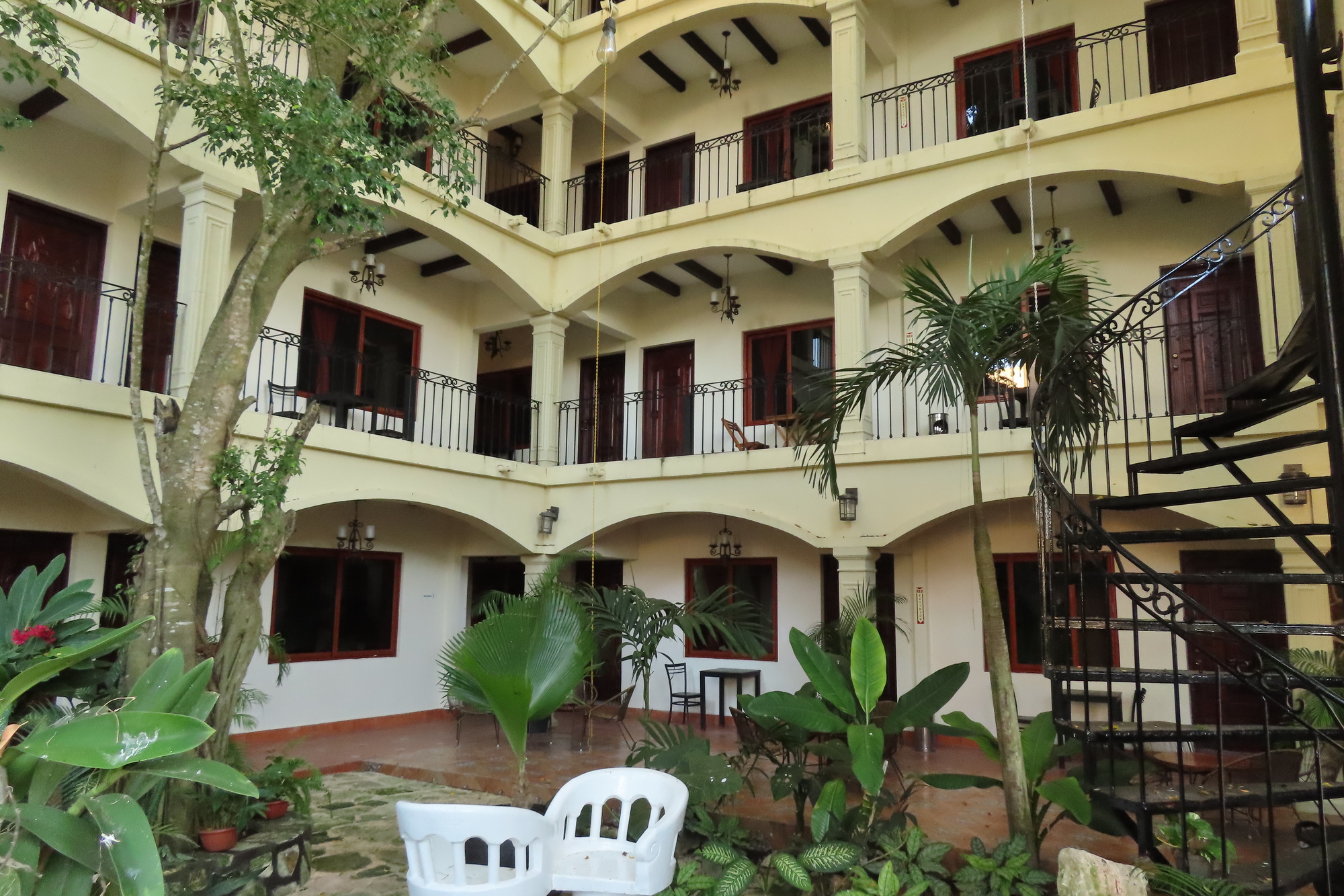 We shifted to a hotel different from any we had tried before in Coba. Earlier we had been perfectly happy in the basement of the totally basic Lol-Ha. The Lol-Ha did have some upstairs rooms most commonly used for tourists, but we had been content in that basement. This time around we have moved closer to the lake, to a place with fancy carving and decor - the Nojoch Che. We are still in our comfort zone, though, because even here the water spritzes out crooked from the bathroom sink - drenching the electrical outlet, and the pool has turned green, because the "machine broke".
