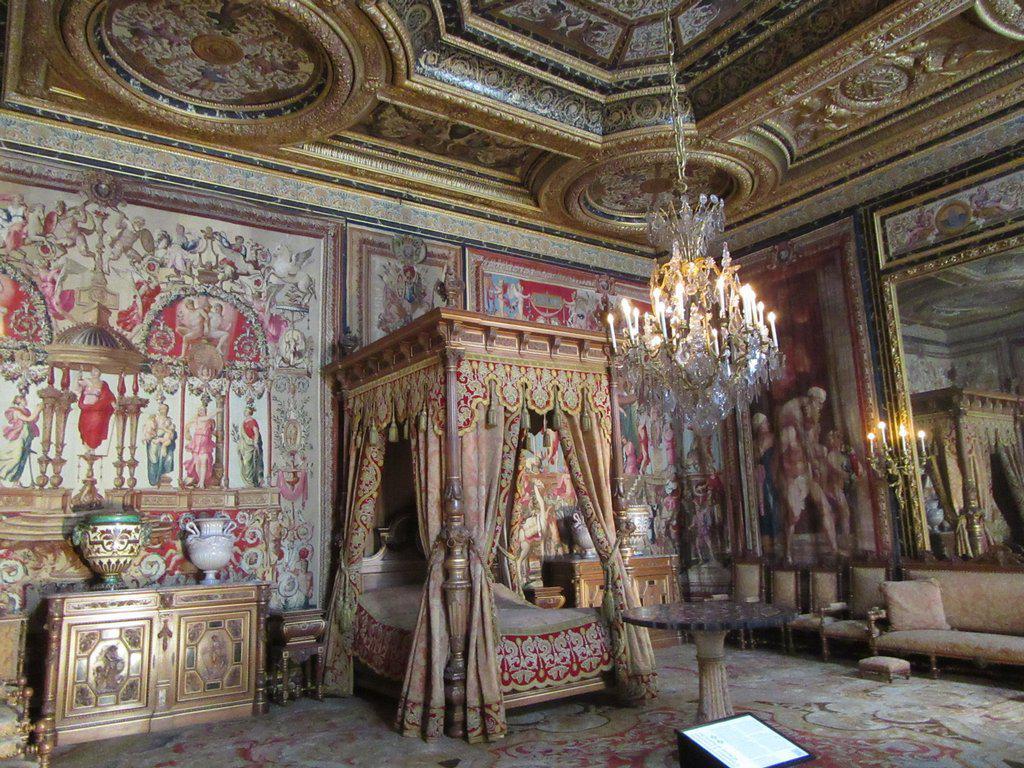 Bedchambers were all of course very elaborate. It was very noticeable how short all the beds were. All also had cylindrical bolsters for pillows. We hate that when we hit them in hotels.