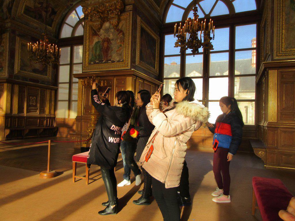 The Chateau when we got there, unlike the roads, was suitably deserted. Partly that was because we got the time wrong and arrived half an hour early to get into the buildings. Instead we walked around outside and tried to figure out which section was which, using our little pamphlet. We were only partly successful, because the thing has been added to and changed so many times that there is no underlying order to it.