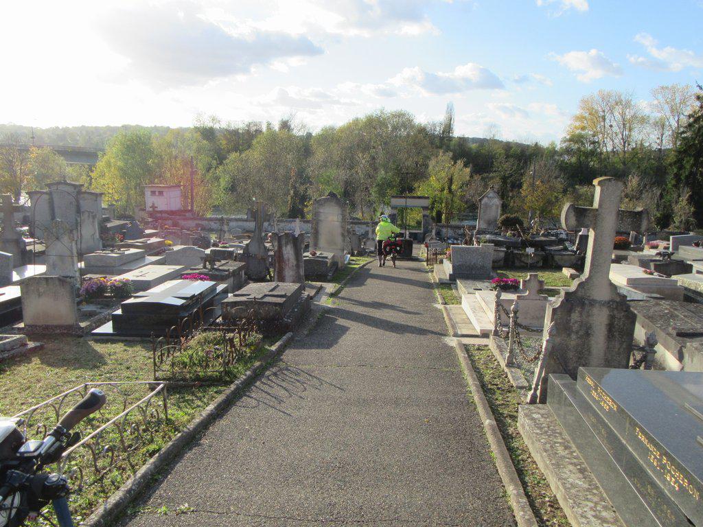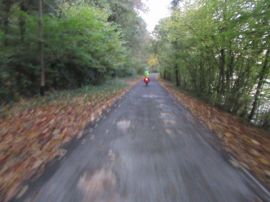 Then there was using low numbered D roads to cut down the distance. Nope. With drivers the way they are here, even D roads are nerve racking. so eventually we went back to the river (the Seine!) and were pleased to find well paved pathway there. That is, until the pathway turned to roadway and the sun set.
