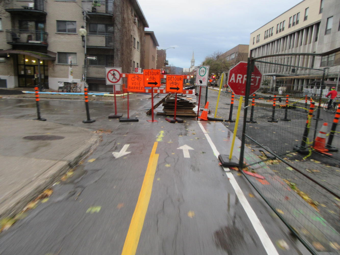 I was not surprised to find part of my "route barrée", which is something in Quebec very reminiscent of France. But I was surprised to see that special provision had been made for the routing the bicycle path around the obstruction. That's unusual, even perhaps in Germany.