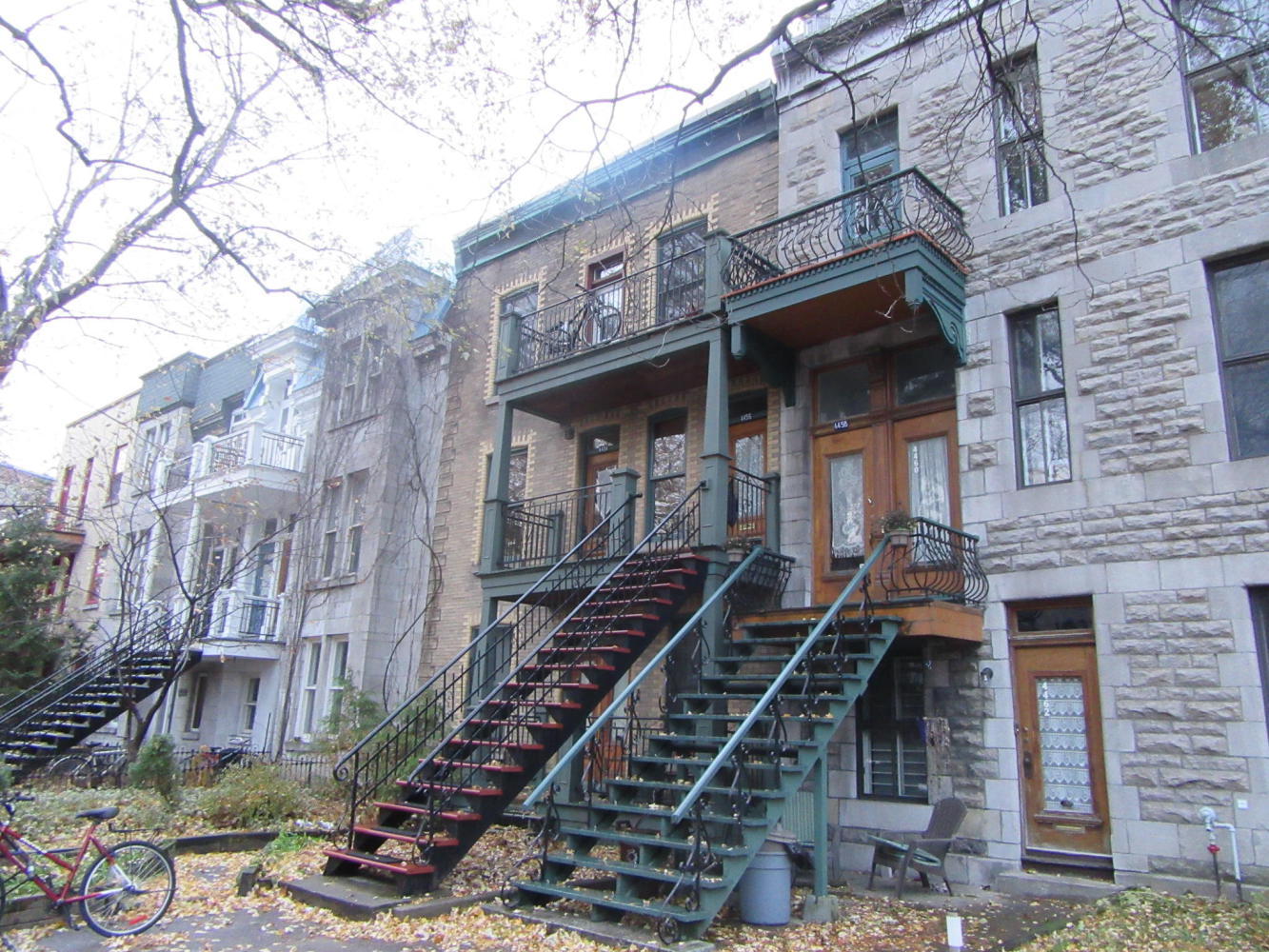 Yesterday on arriving in Montreal it struck us clearly how much more beautiful Paris is. In fact Montreal is pretty much devoid of interesting architecture, we think. But an ad at the airport depicted houses in the "Plateau" area, where the stairs are outside the buildings. We have never thought of these as beautiful, but maybe, and there are lots of these houses on my bagel route. So I thought I would include an image of them for completeness.