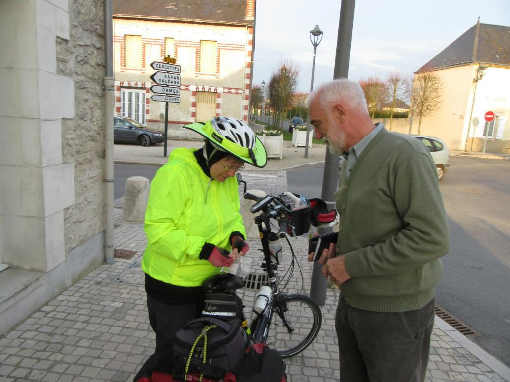 The next town along from the little hamlet where we hae stayed had no services, but beyond that lay Gidy, where Bernard had told us we could find a bakery. Once in that village we asked a man in the street. He easily showed us the way, commenting that this was "his" only retail business. The man turned out to be Benoit Perdereau, the mayor of the town. In true small town form we also learned that he had married an Argentinian and that he was on his own right now since she was visiting home.