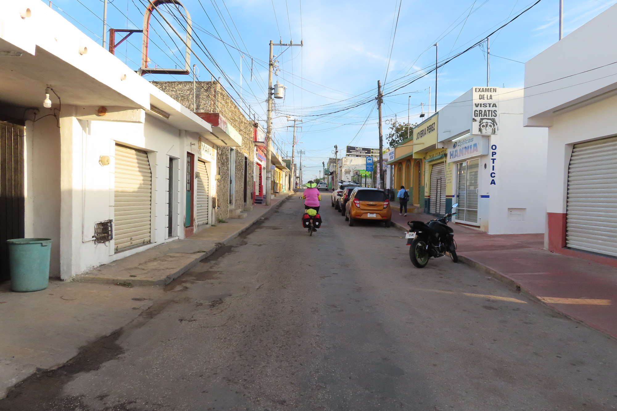 After leaving our bikes (unlocked, because there is no theft danger here) in the guide office, we set off into the town to buy some bananas, and also some more pain meds for me. After what happened in Germany, I am highly resistant to changing our plans just for some kind of medical reasons. So I am hanging in there until we circle back around to Coba, and the dentist can have a look. However, if we think there is some serious infection, we will soon be in easy reach of Merida.