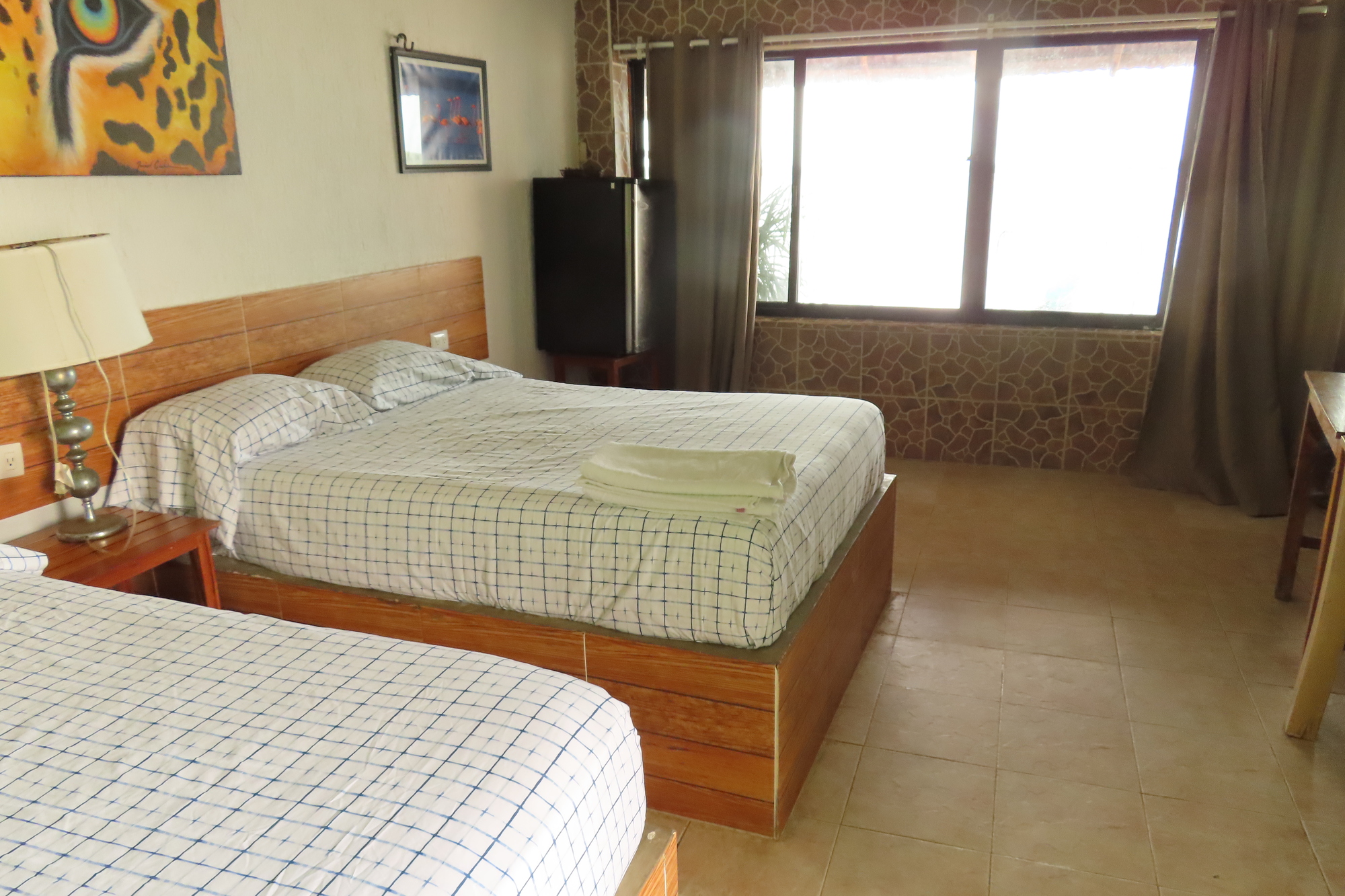 Our room at Diego's "Ria Maya" operation is large and clean, with a fridge and aircon, and we think, hot water. But one big plus is the window looking directly on to the water.