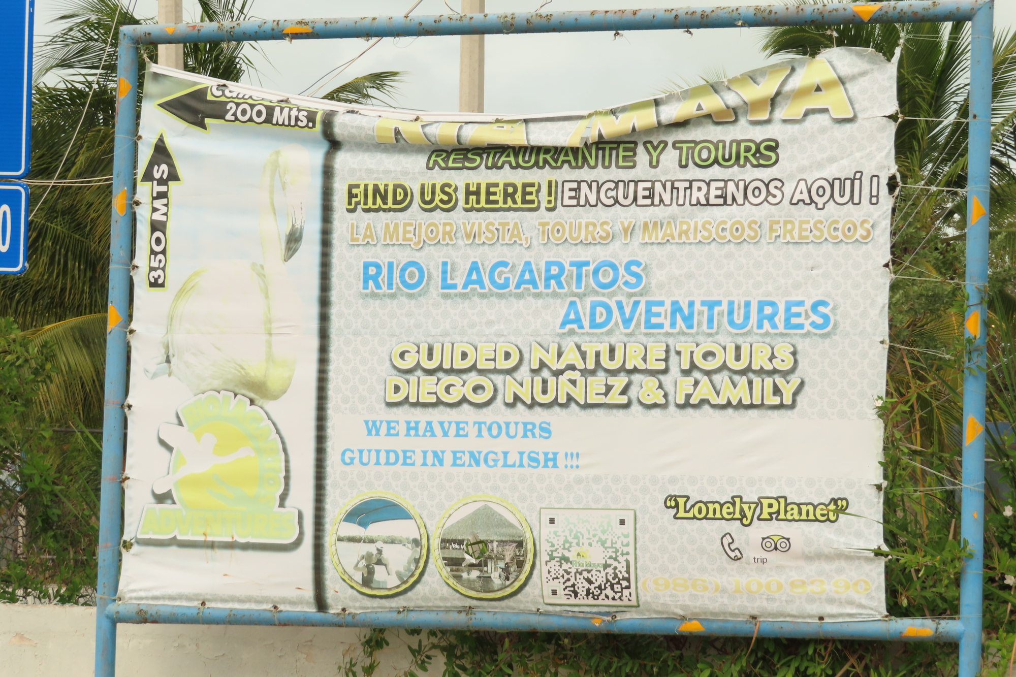 As we entered Rio Lagartos town, we encountered Diego's sign. Diego's place is on the far edge of the malecon. There are lots of hotels and guide services along there, but we have decided that he (and his family) are the best. Diego is second in the line of Diego's in the Nunez family. Diego's father was named Diego and so is his son. All are or were guides in the business. Strangely, the 9 year old son of Deigo III is not named Diego. It may also be that we will go out tomorrow with Andrea, daughter of Diego II. Andrea's bird photos are all around the restaurant and guide office.