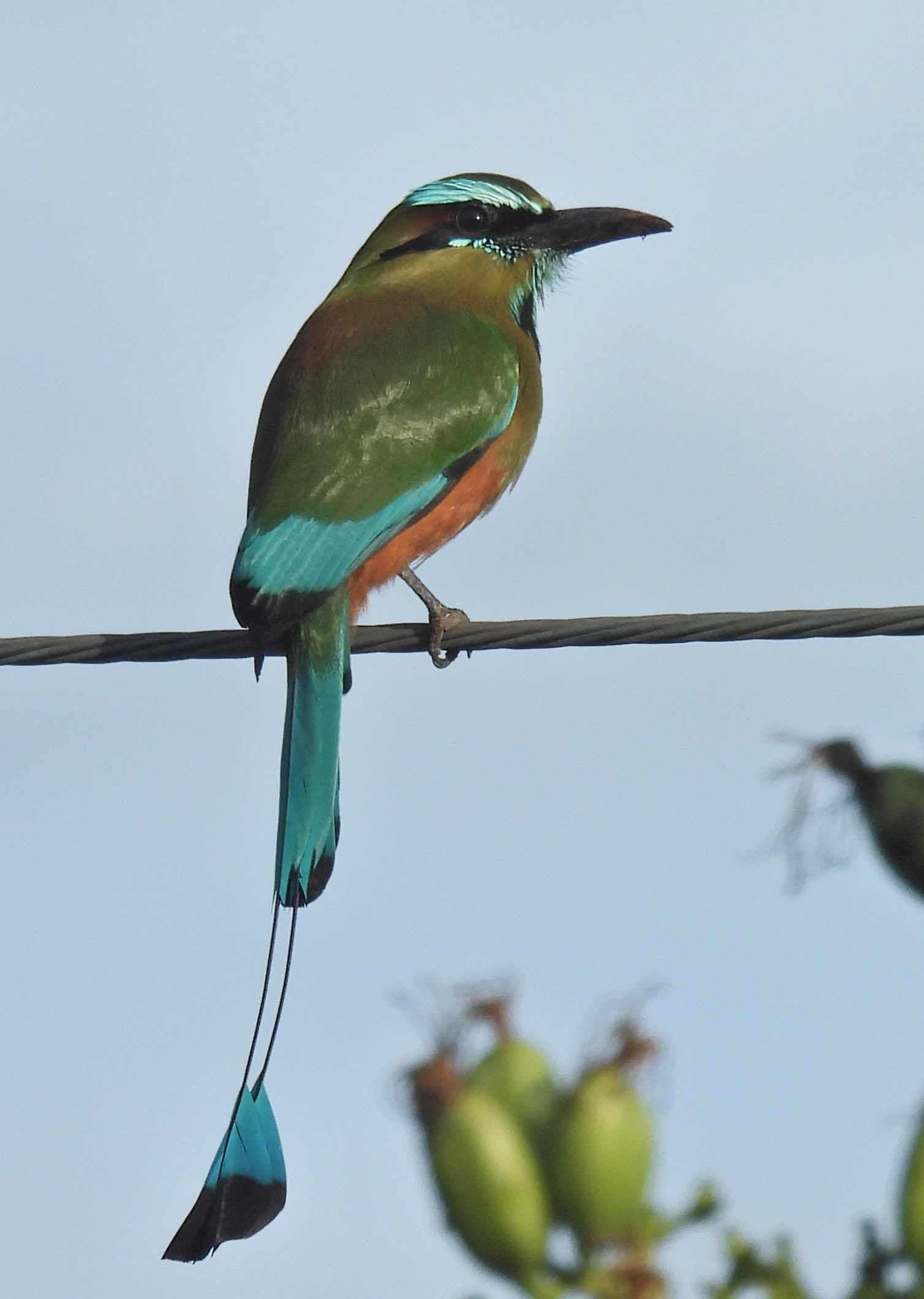 Next, we encountered a Motmot, just sitting on a wire over the road: