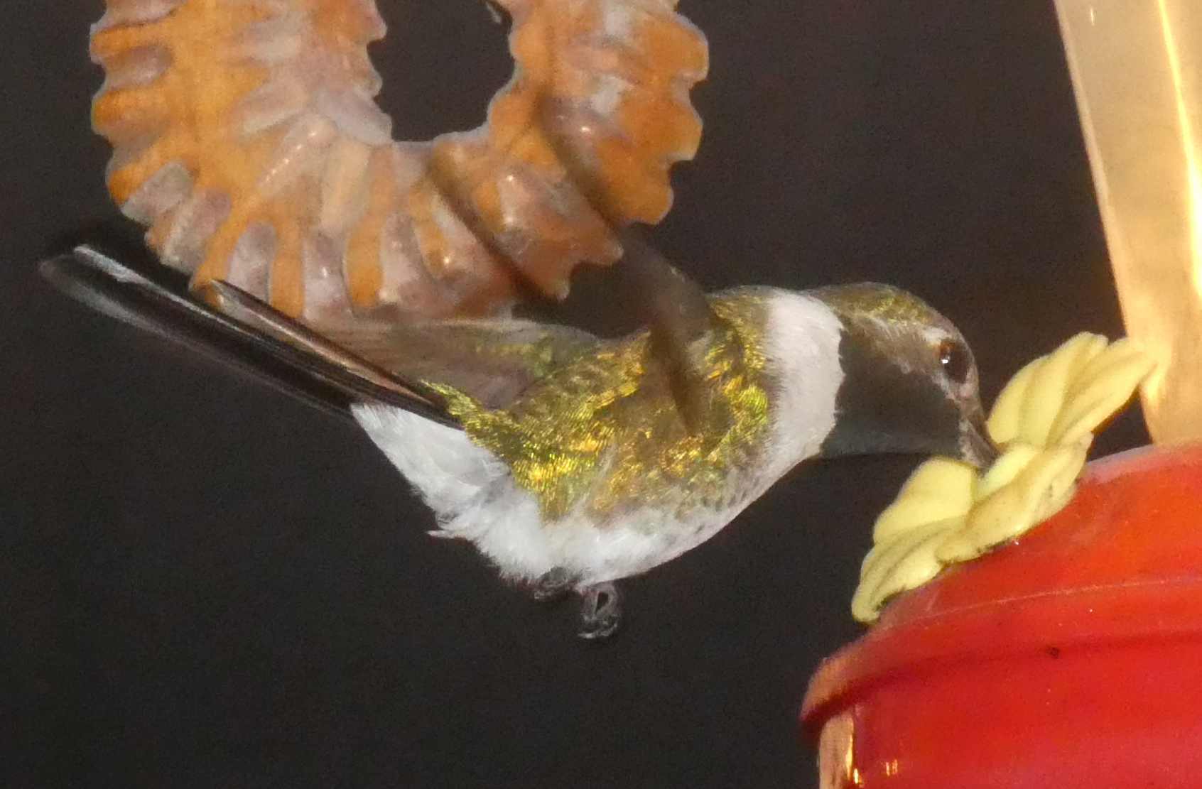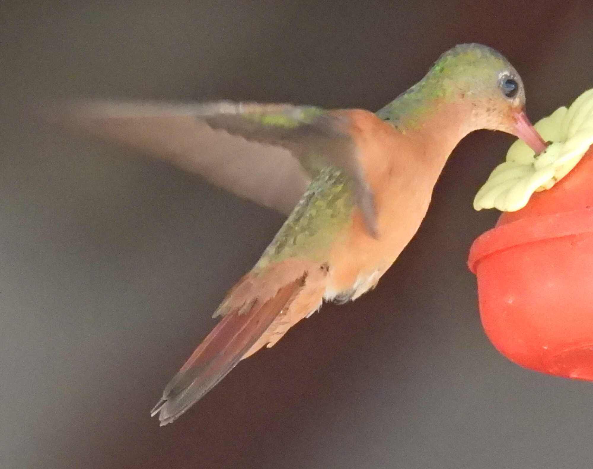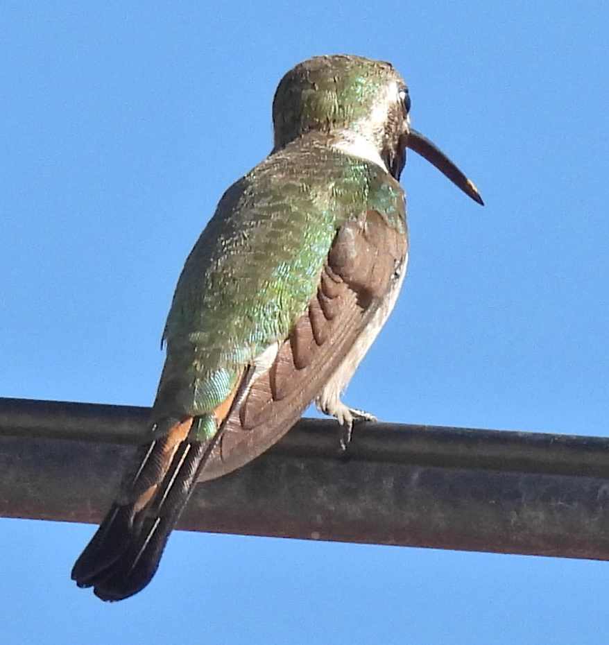 In a twist, Dodie had voted against bringing the big camera. But I was carrying the Lumix, which after a week in solitary confinement at the bottom of the sock pannier has decided to work for a while. Here is its "take" on a Mexican Sheartail: