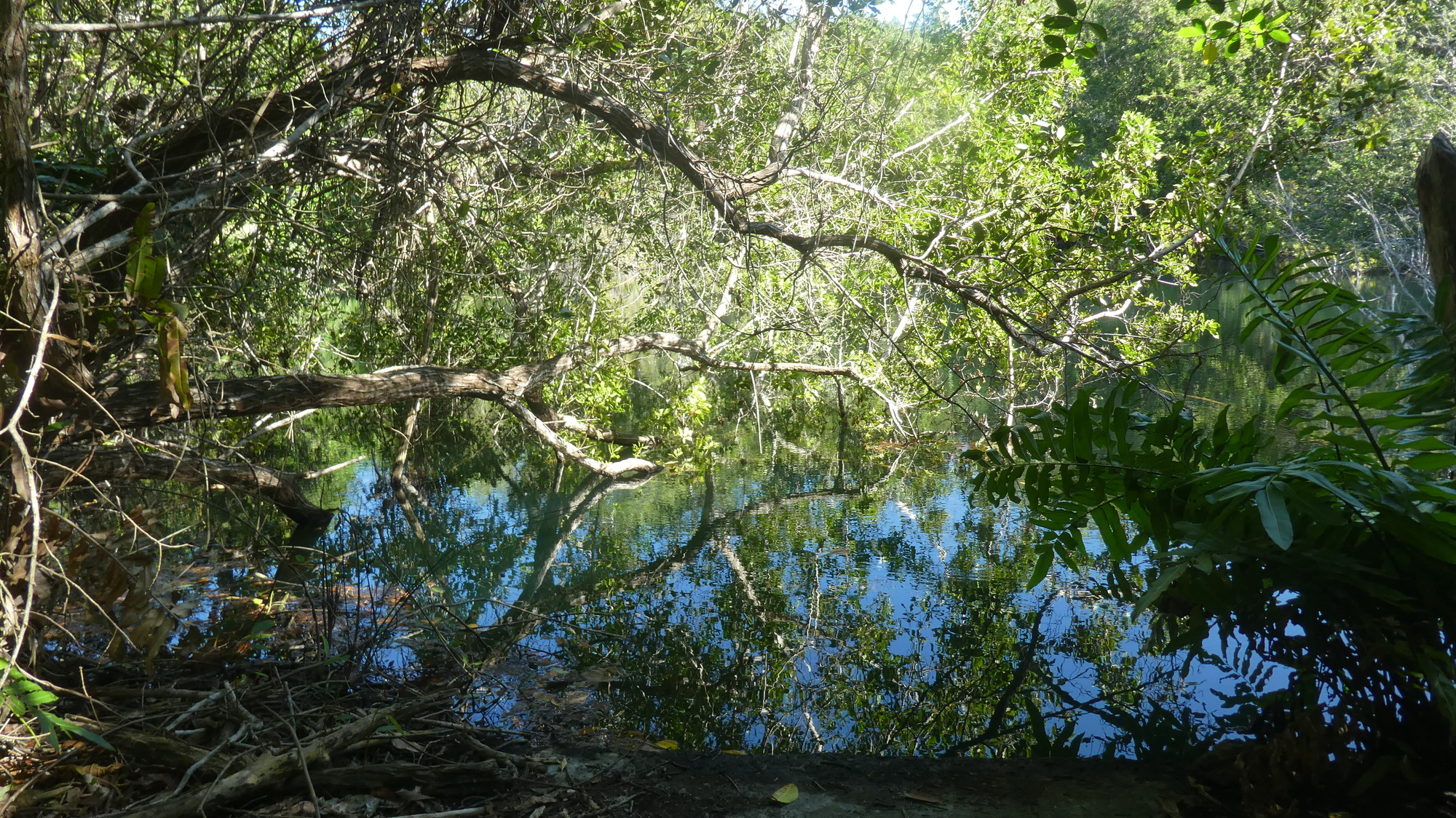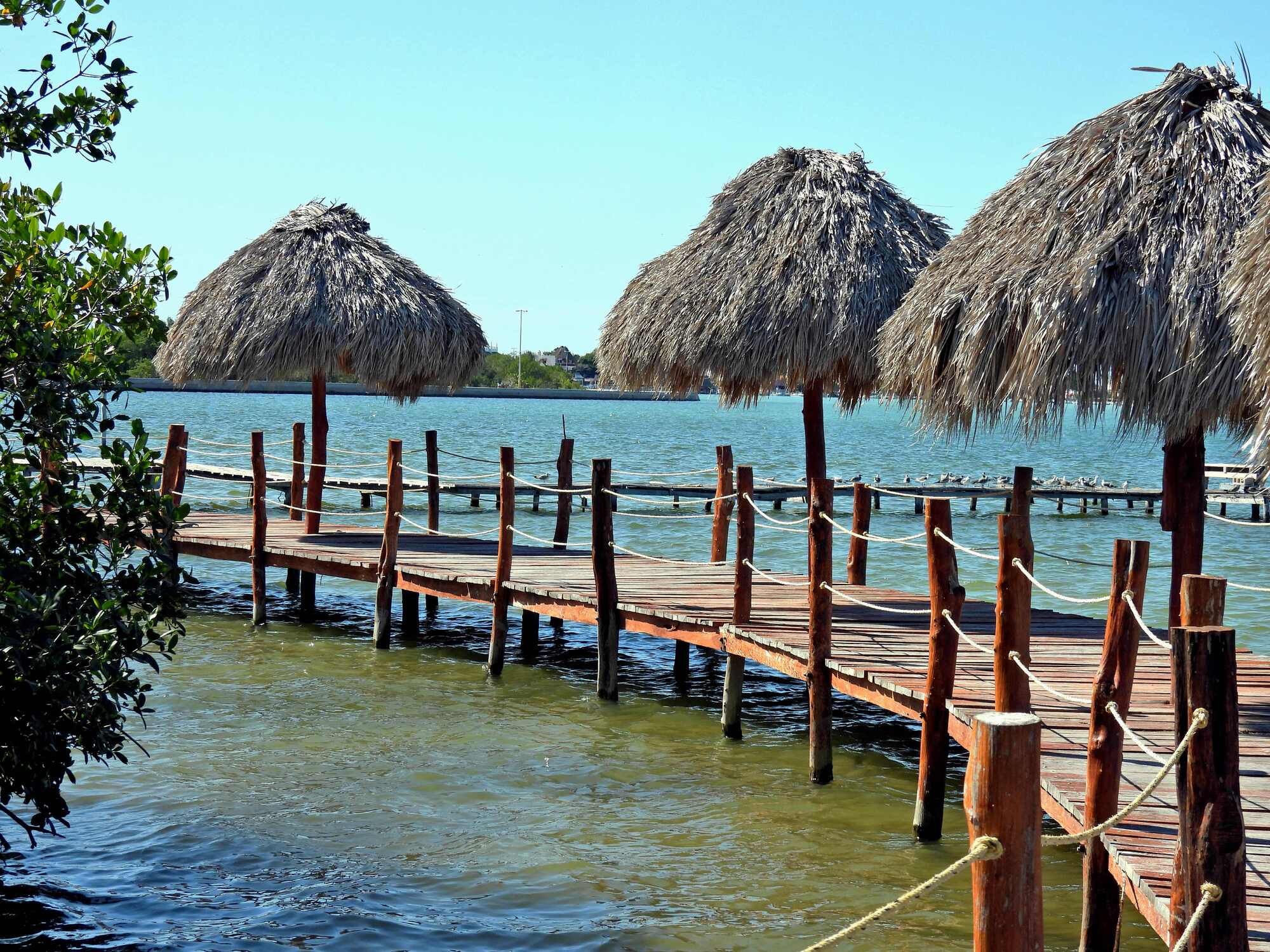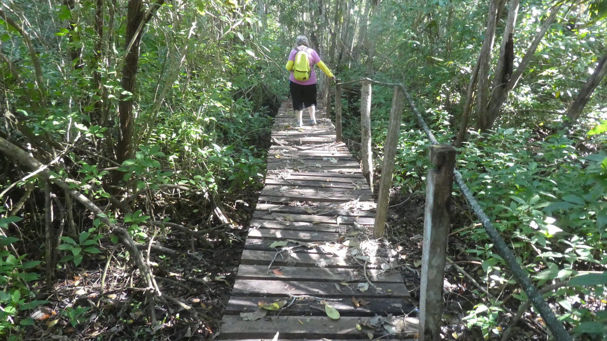 We had two riding options for today. We could go west along the coast to the fishing village of San Felipe, or we could go east to the salt extraction area of Las Coloradas. Overnight, though, Dodie came up with a super option. On the website birdingplaces.eu she found two birding trails, detours off the way to Las Coloradas. The website described these in glowing terms, with the one: "Sendero Peten Mac" offering a trail through mangroves to an elevated walkway around a pond with birds and crocodiles. It offered a long list of super birds to see, and a cool forest walk. So we fixed on that one.