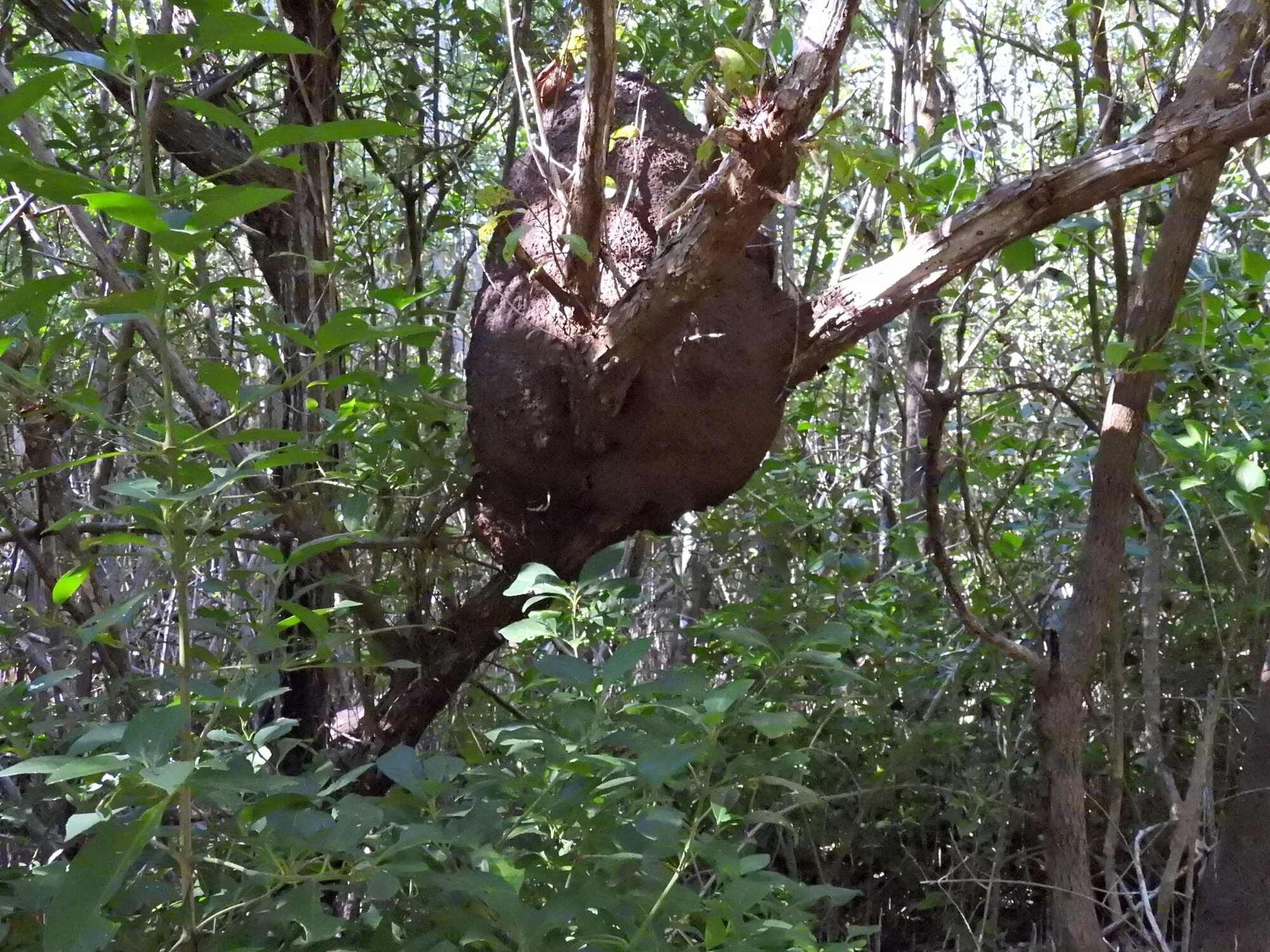 We heard a few bird sounds, but it was difficult to see through the dense foliage. There were lots of arboreal termite nests to look at, but that was mostly it.