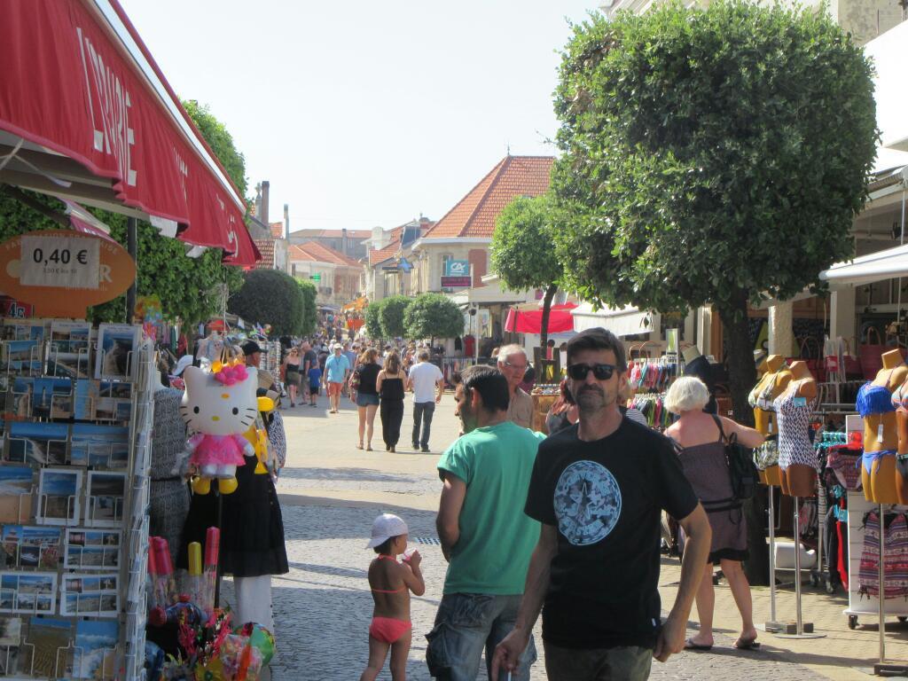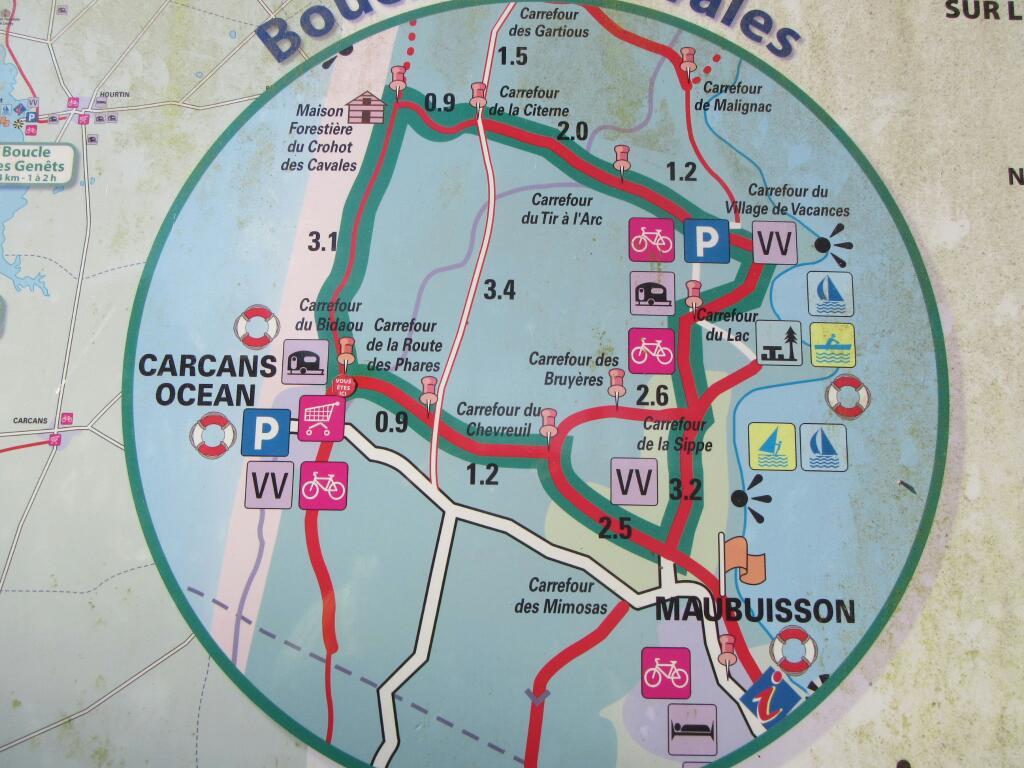 One piece of news brought down by Ken and Judy was that they had passed through a market at Montalivet les Bains. That would be perfect for lunch. So when we hit town, we carried on by all the restaurants and sought out the market. It was still in operation, and there even was BBQ chicken. But out in the bright sun Dodie was wilting fast, and even if we bought something we would need to find some deep shade to eat it in.