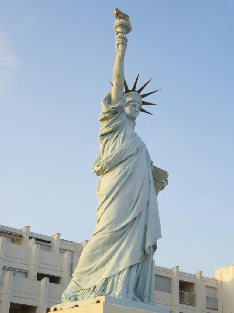 But of course, we had places to go, in fact, ferries to catch. The ferry in this case crosses the Gironde estuary, linking Soulac to Royan. Before rushing to the ferry, though, there was one more interesting thing to see. At the end of Soulac there is a miniature Statue of Liberty. It was put here to commemorate that in 1777 the Marquis of Lafayette sailed from Bordeaux and headed for America to support the fledging democracy there. Of course much later the Americans came back to help out here, during WWII. Notwithstanding, the town of Royan was basically destroyed, by the British.