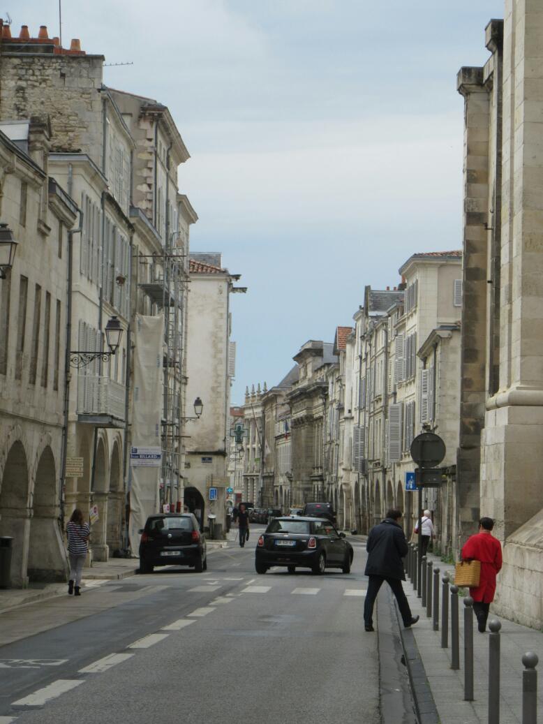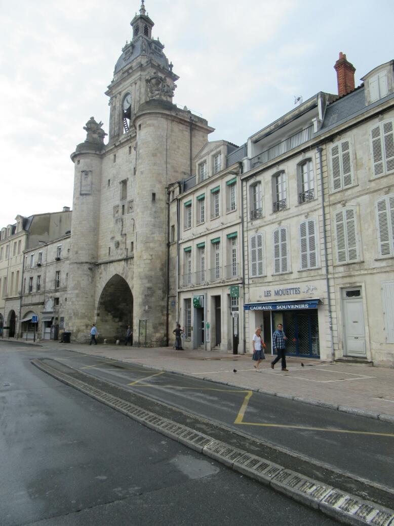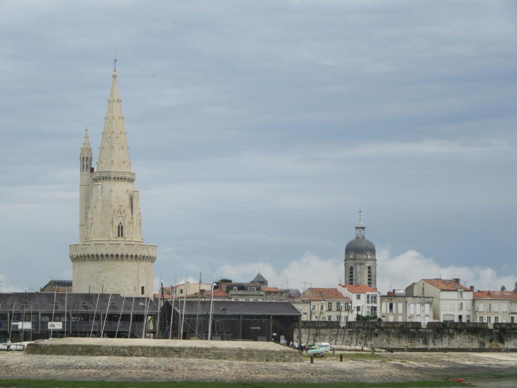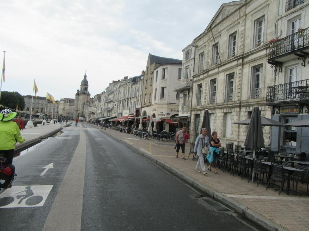 When signs gve the distance to La Rochelle as 1.5 km, we still did not see anything looking like a famous 18th century town and port. It's just hat a big town then is not very big by our standards today. But when La Rochelle did appear, it was satisfyingly impressive, with its port entrance guarded by two towers (tour de la Chaine and Tour de la Lanterne, and the elegant tour St Nicholas over to one side.