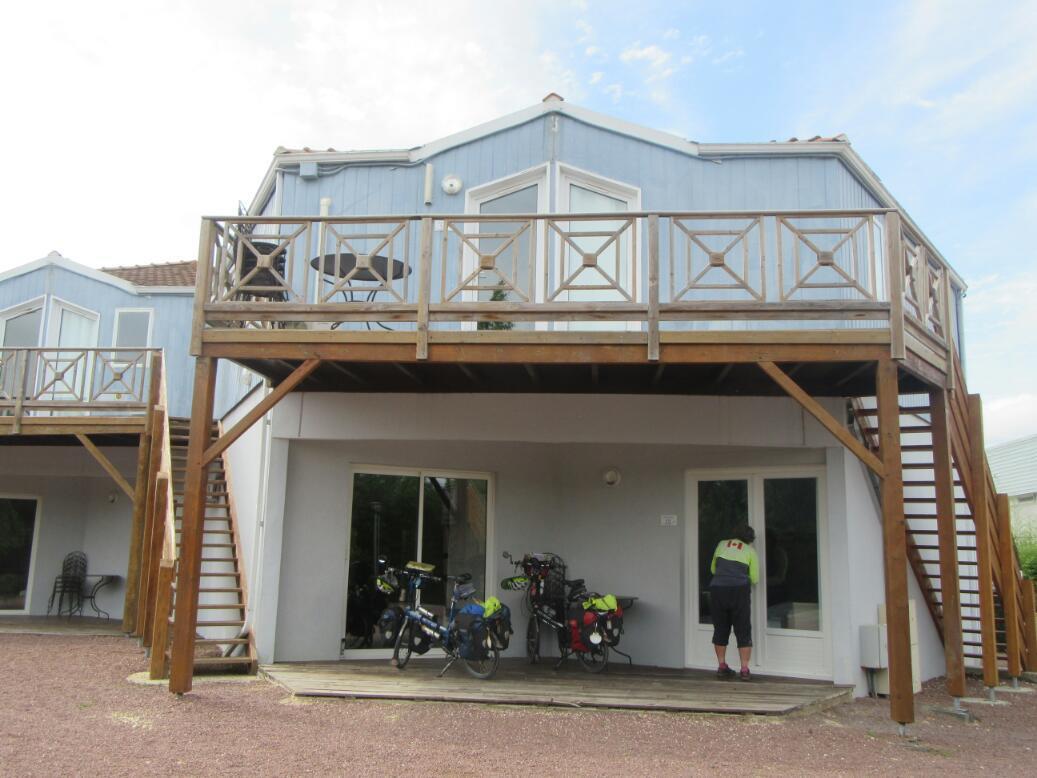 We had not tried to locate or book a place to stay, following our mishap in not reaching La Rochelle on time. So we rolled into Marans with no idea of what was where. Fortunately Tourist Information was open, and they found us just the most splendid place. It is a two bedroom apartment, on the ground floor, with a ground level patio accesed by sliding doors. There is a complete kitchen, and a real dining room table for typing this blog at! We can open sliding doors and regulate air flow perfectly, we can sit on a sofa and watch TV, the bed has a fluffy quilt!
