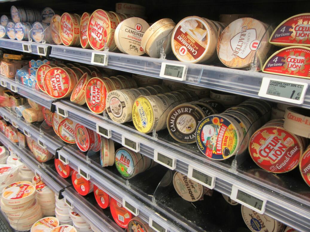 Best of all, just down the lane is Super U! Super U and Intermarche are the two major grocery chains in this part of France. Typically, they also sell hardware, electronics, bicycles, and such. So like e Leclerc they are more or less like a Walmart Supercenter. But the thing about Super U, like almost any grocery in France, is that the products are super quality compared too what we have back home. Certain categories are insane - like the huge cooler wall of prepared "puddings" - creme caramel, Liegois, chestnut, there is so much and all great. Cookies too are a specialty - a whole aisle of quality packages. And cheeses!