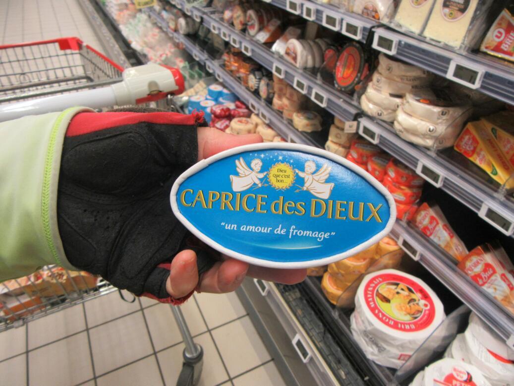 One cheese that our friend Michel introduced us to is "Caprice des Dieux". It is Brie-like. We love it. At Super U we found a cycle friendly size of it. What a joy.